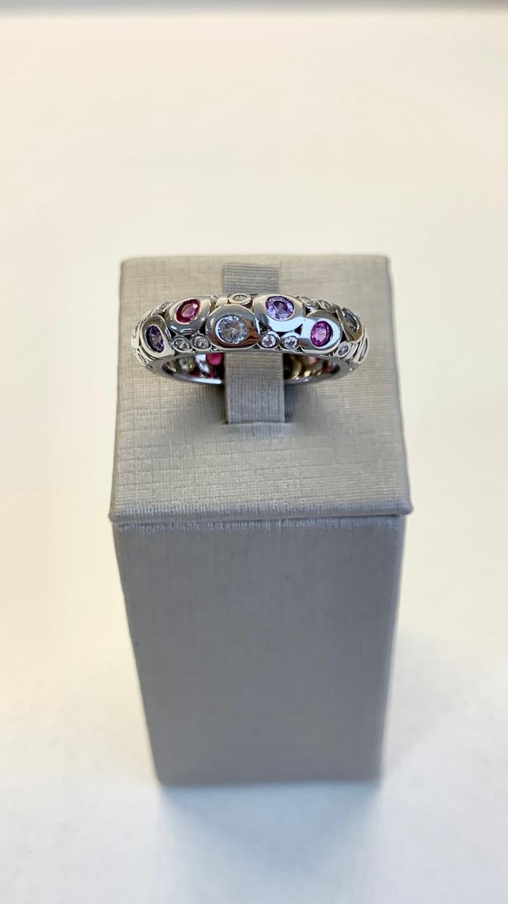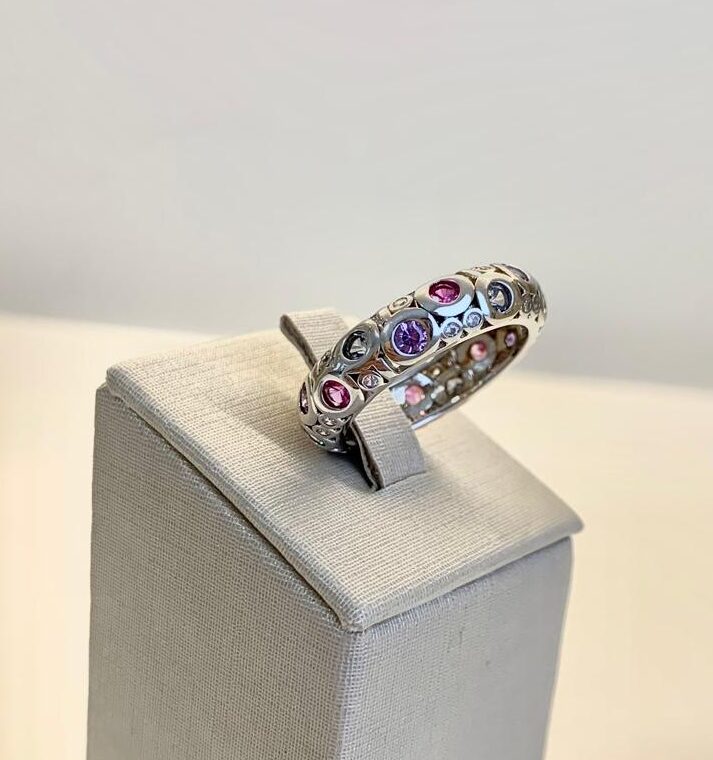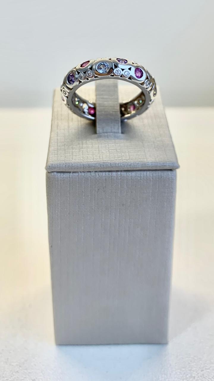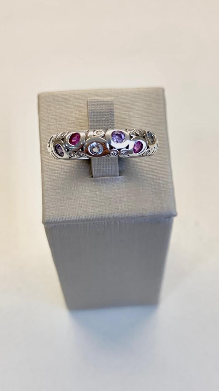 Aliança rainbow, com zircônias coloridas em prata 925.