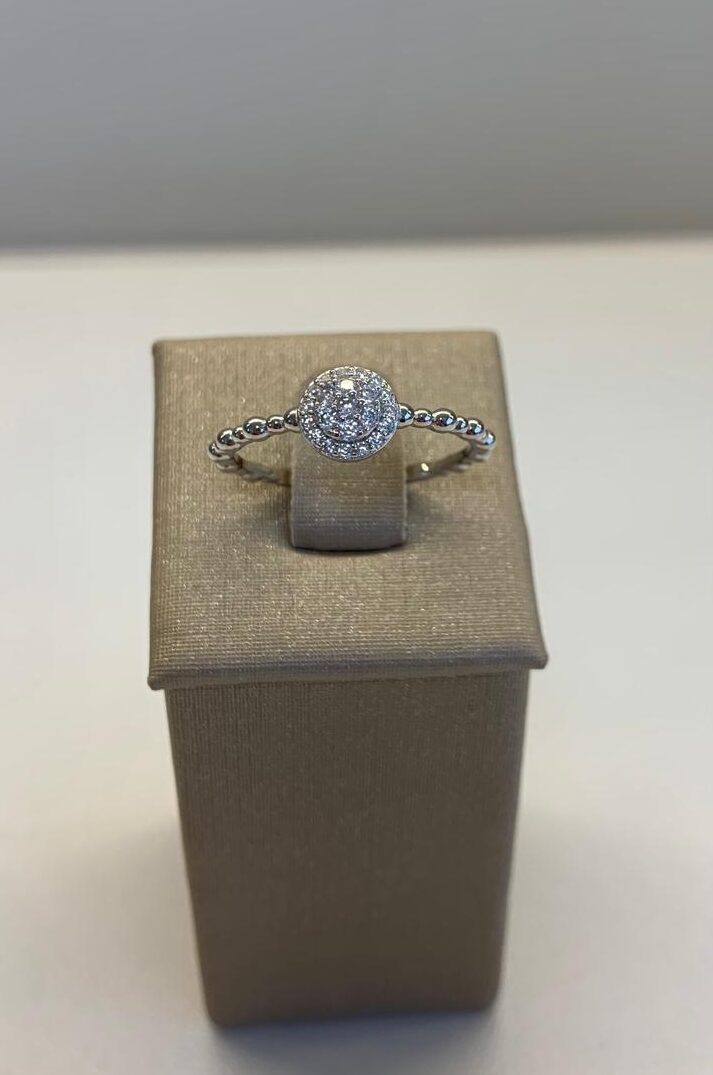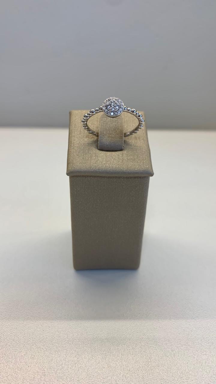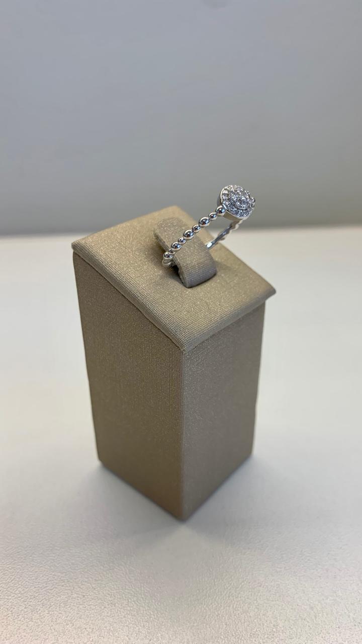 Anel miniesfera com flor cravejada de zircônias brancas, em prata 925.