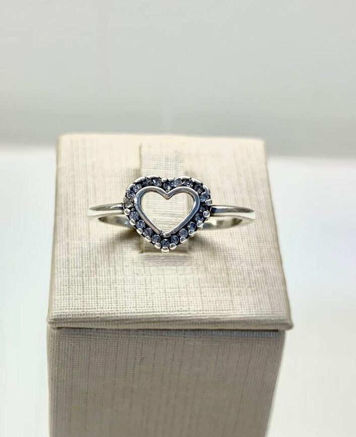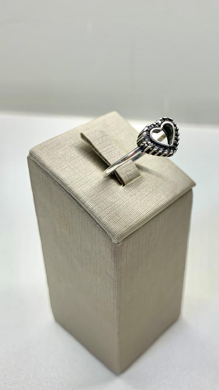 Anel de prata 925, com coração vazado com zircônias.