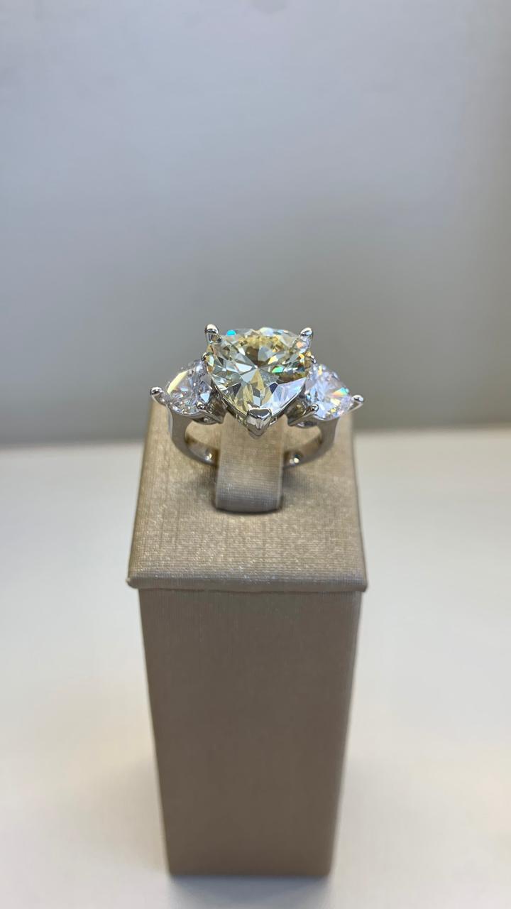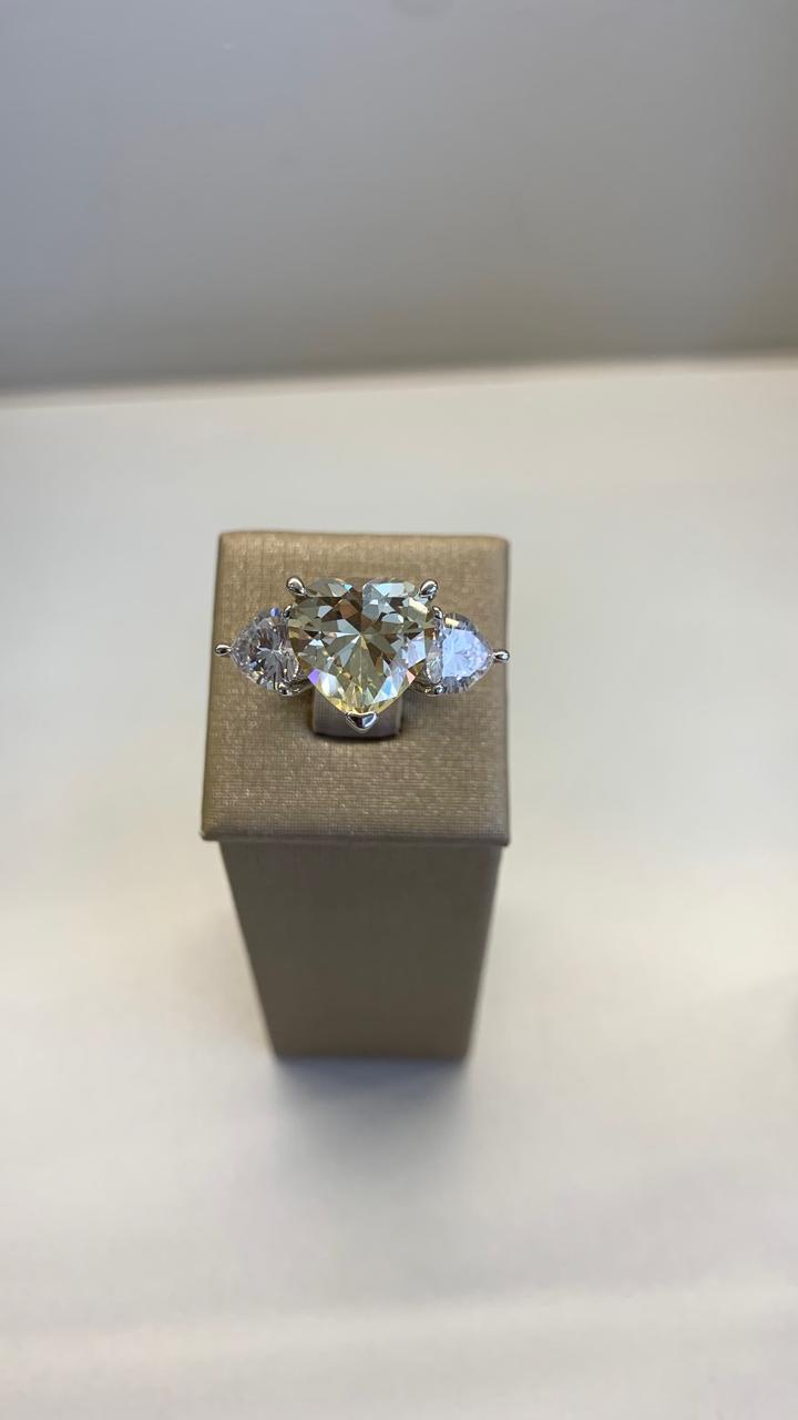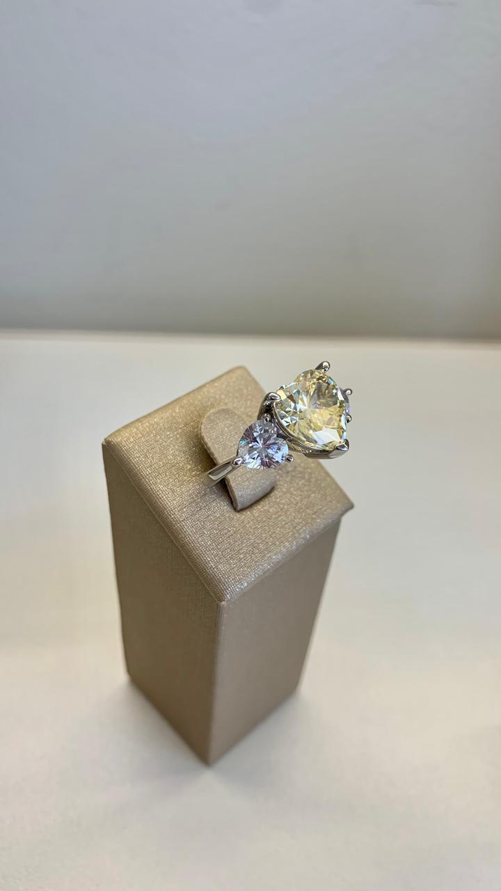 Anel corações de cristal e citrino, em ródio branco.