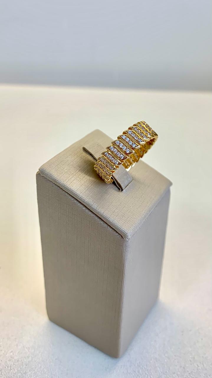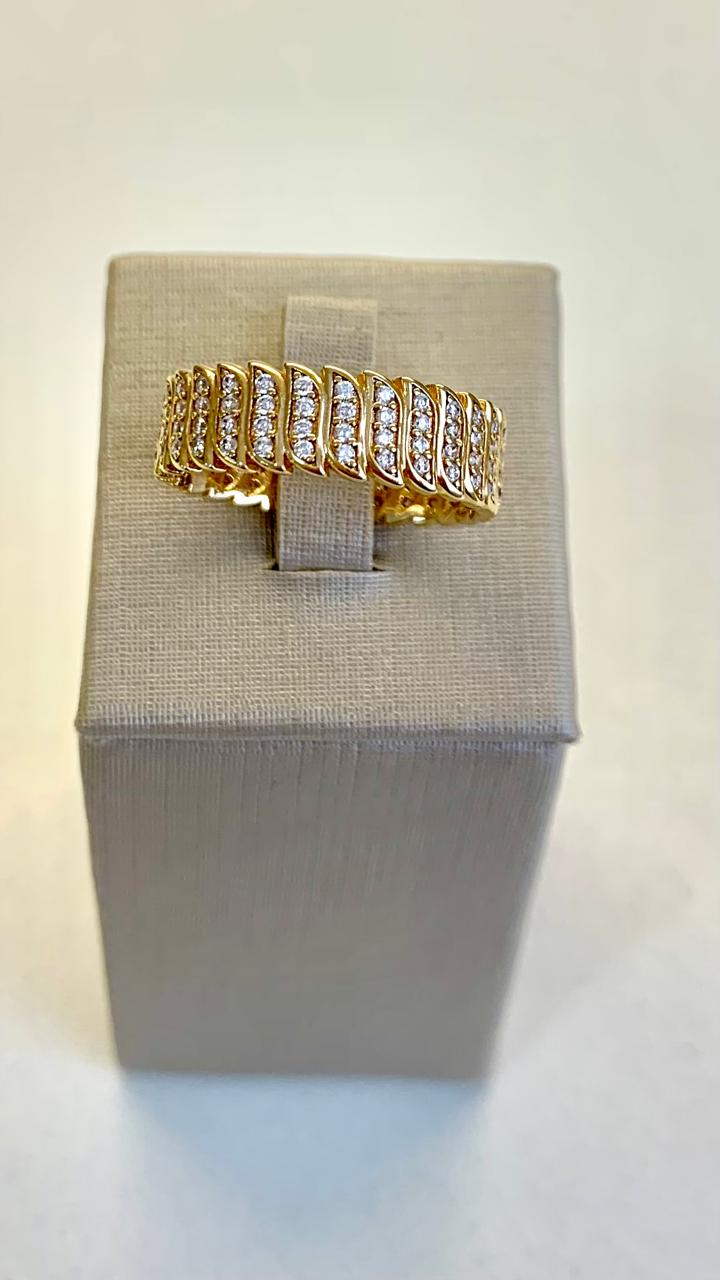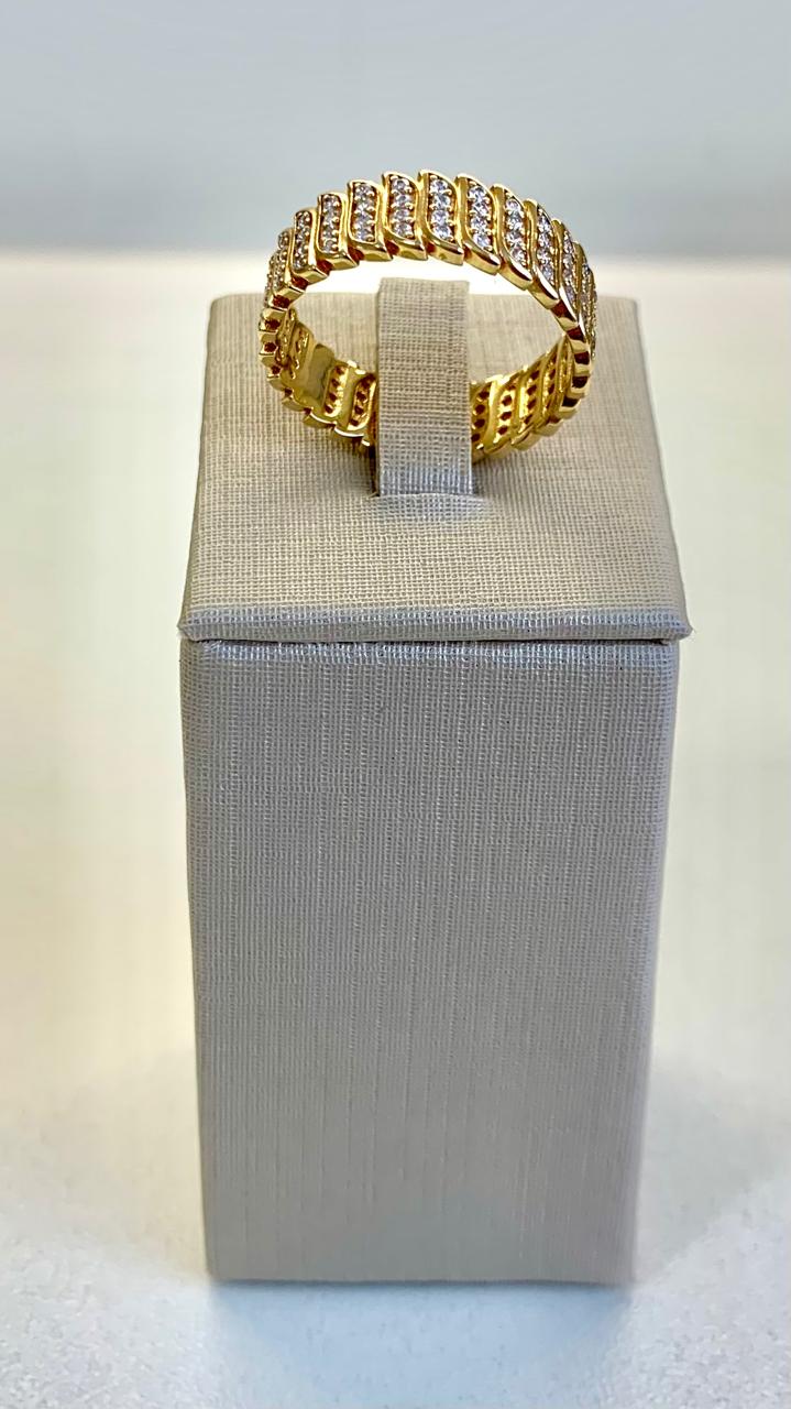 Anel de prata 925 com banho de ouro 18k, cravejado com zircônias.
