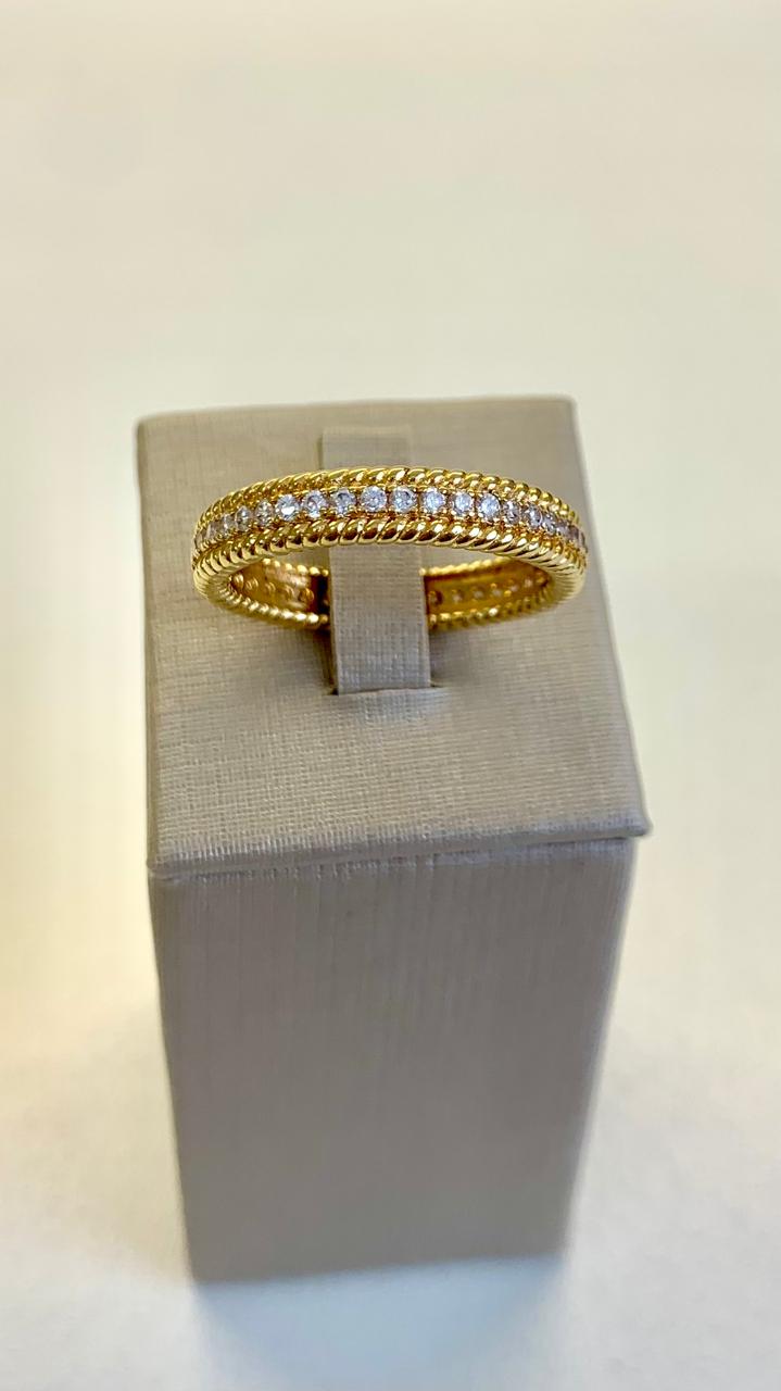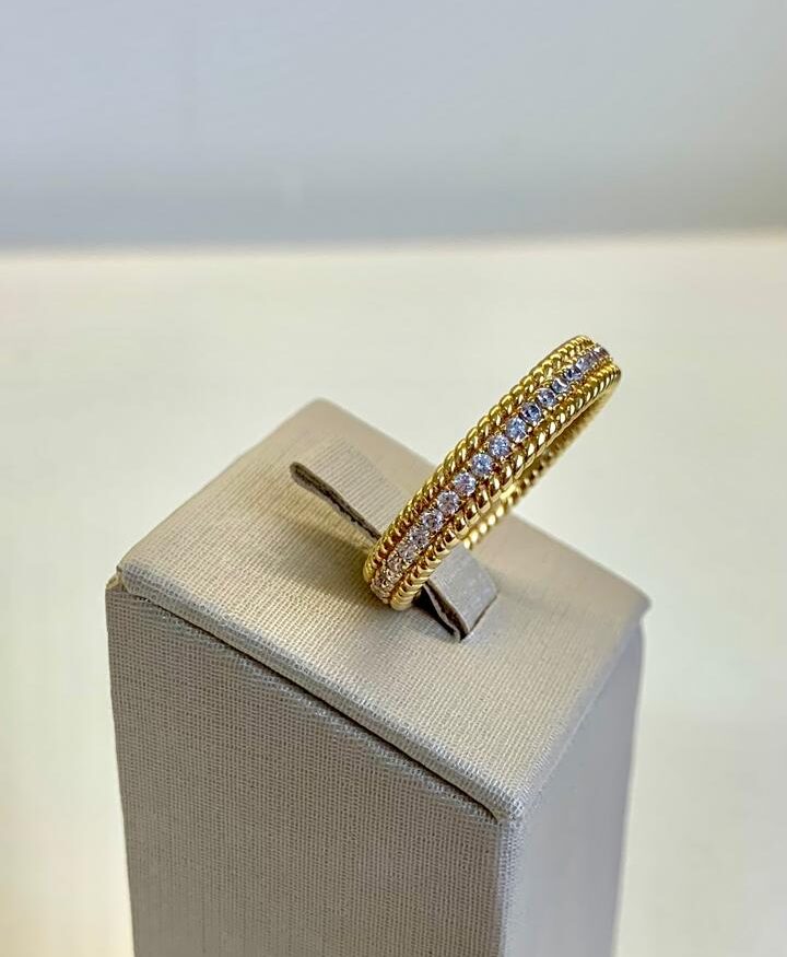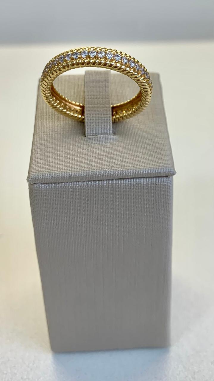 Anel de prata 925, cravejado de zircônias com banho de ouro 18k.