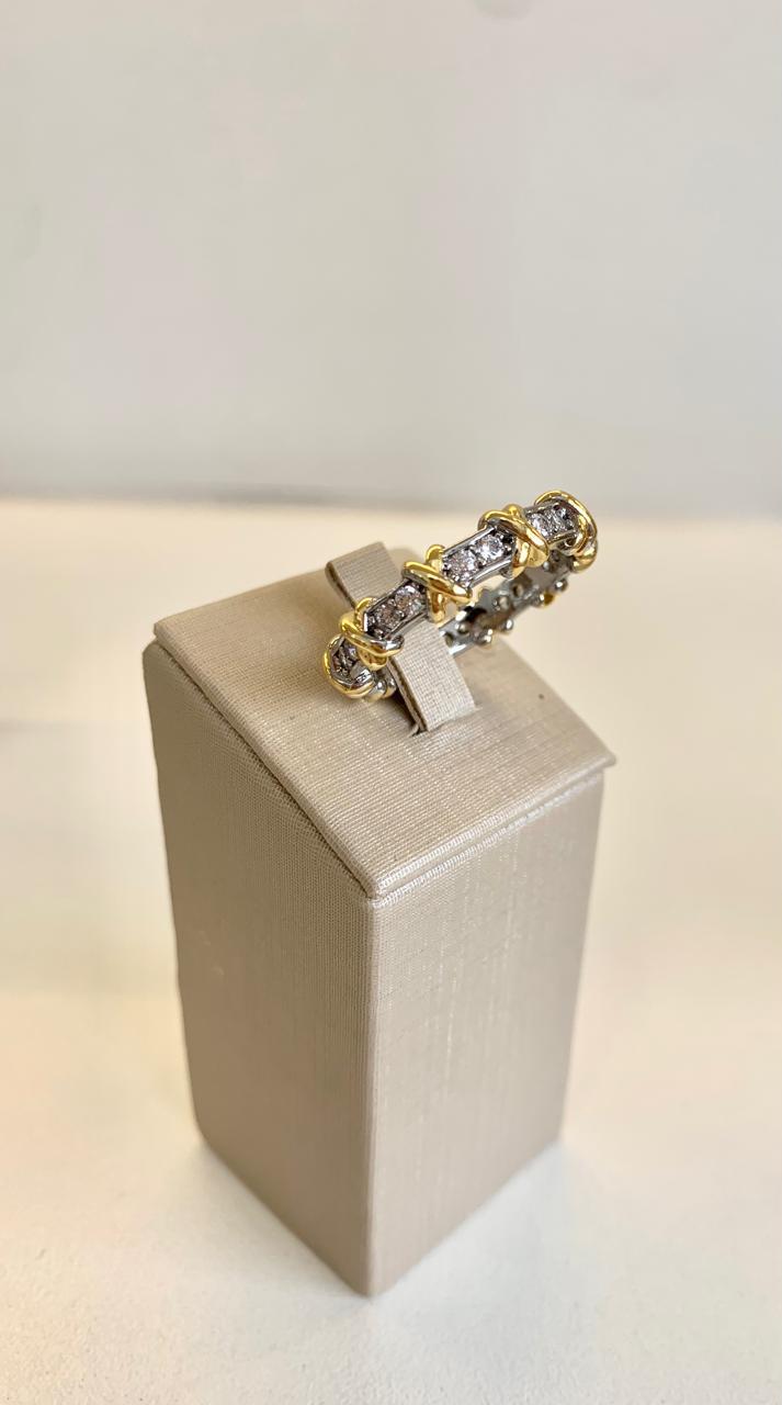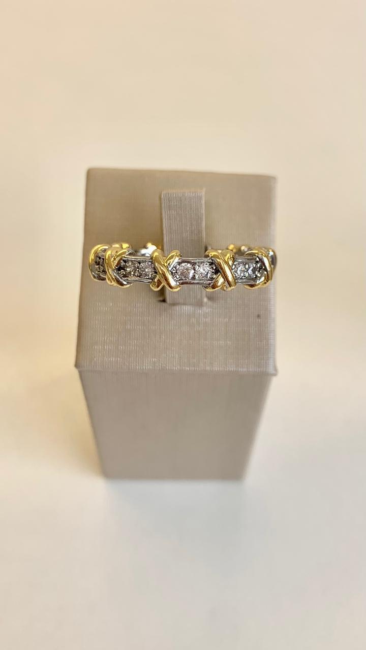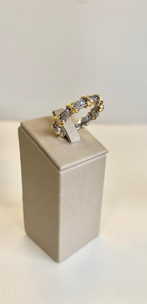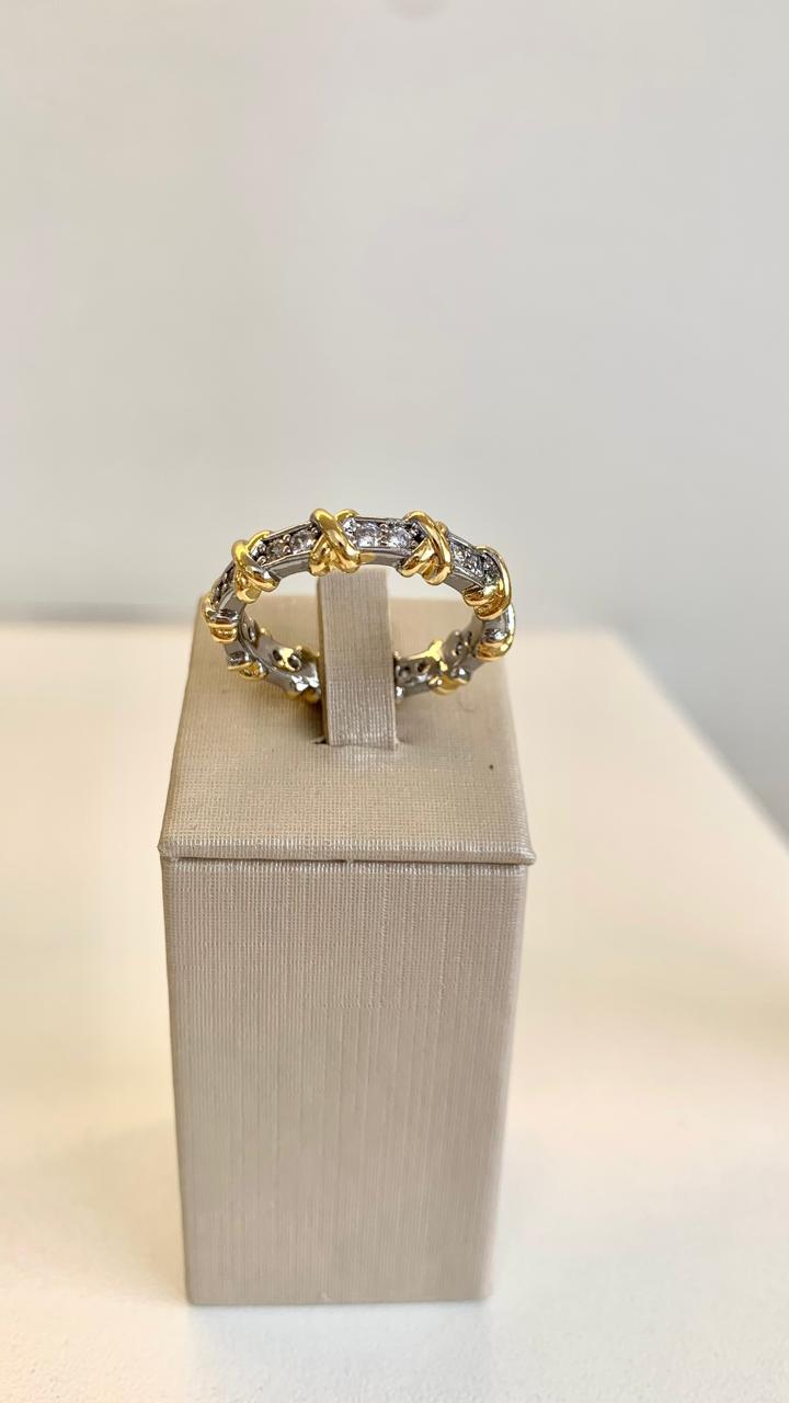 Anel em ródio com detalhe em x banhado a ouro 18k.