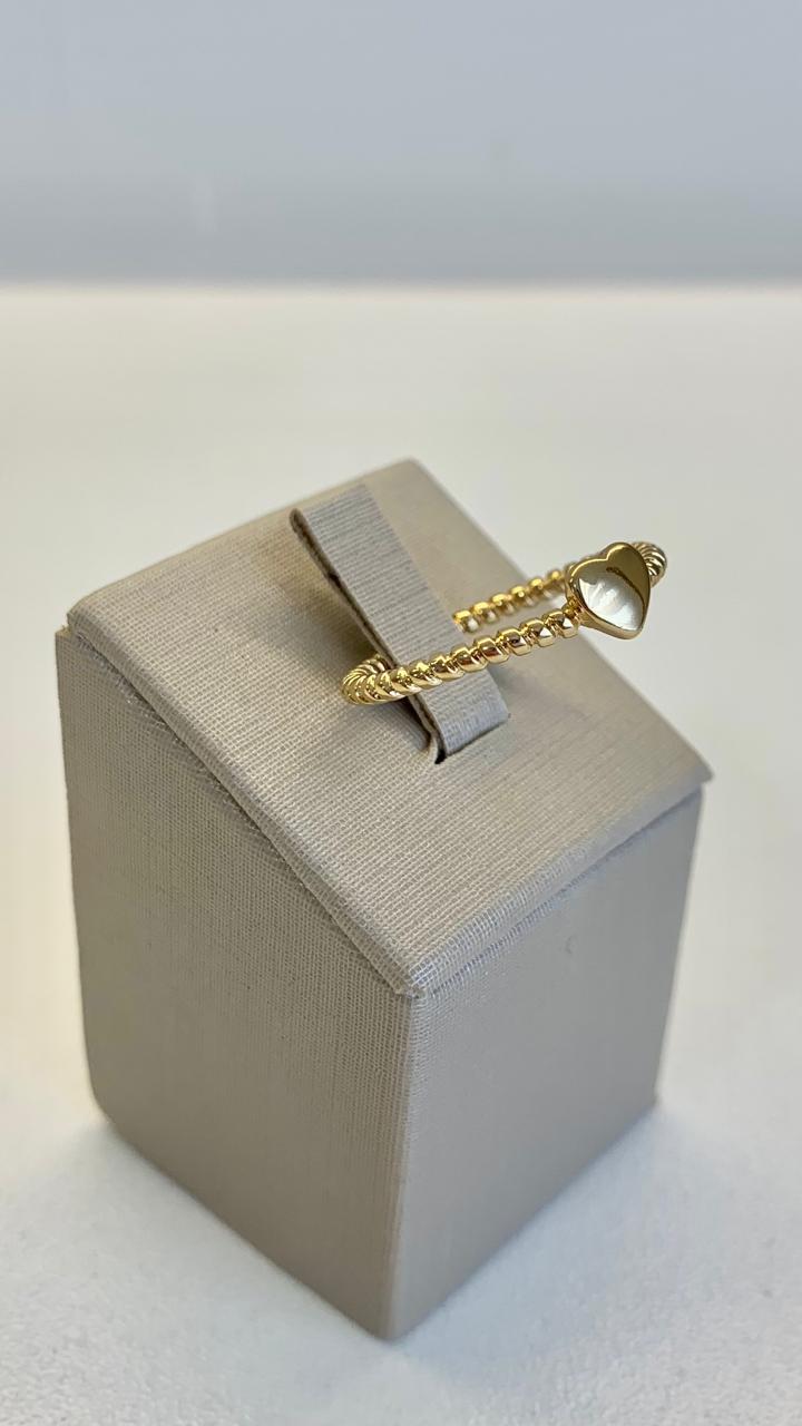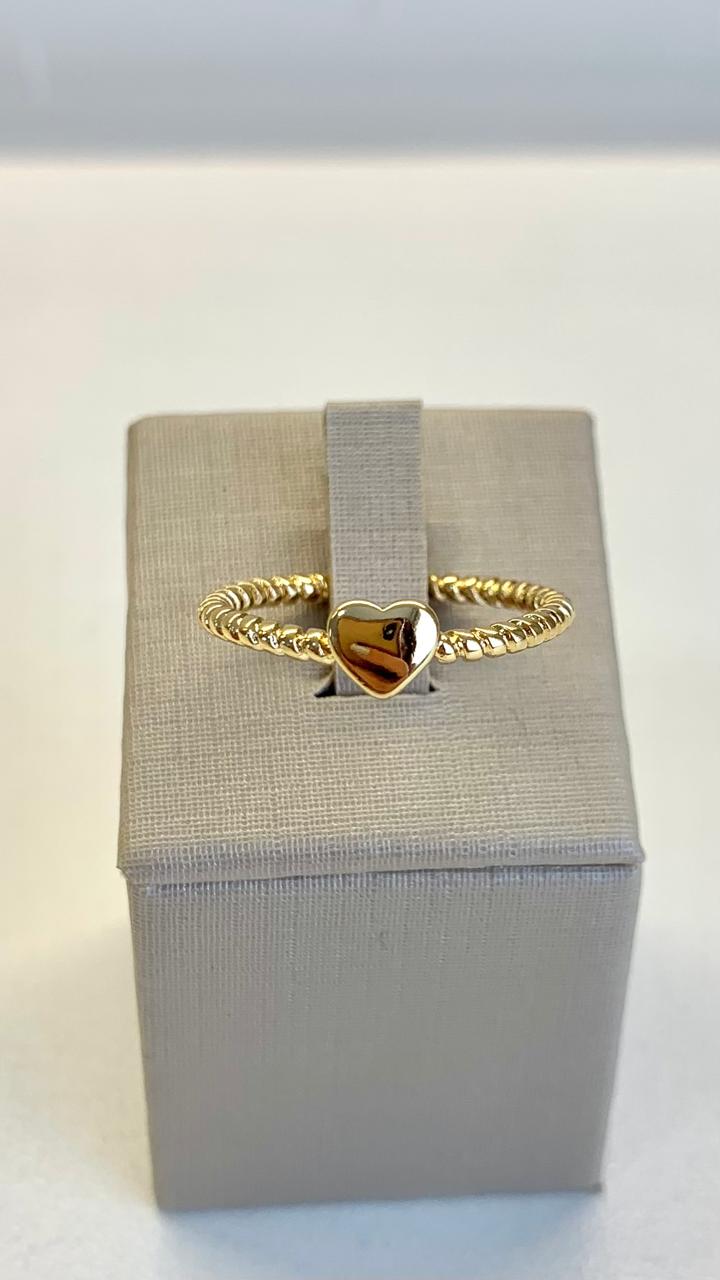 Anel esferas com mini coração liso banhado a ouro 18k.