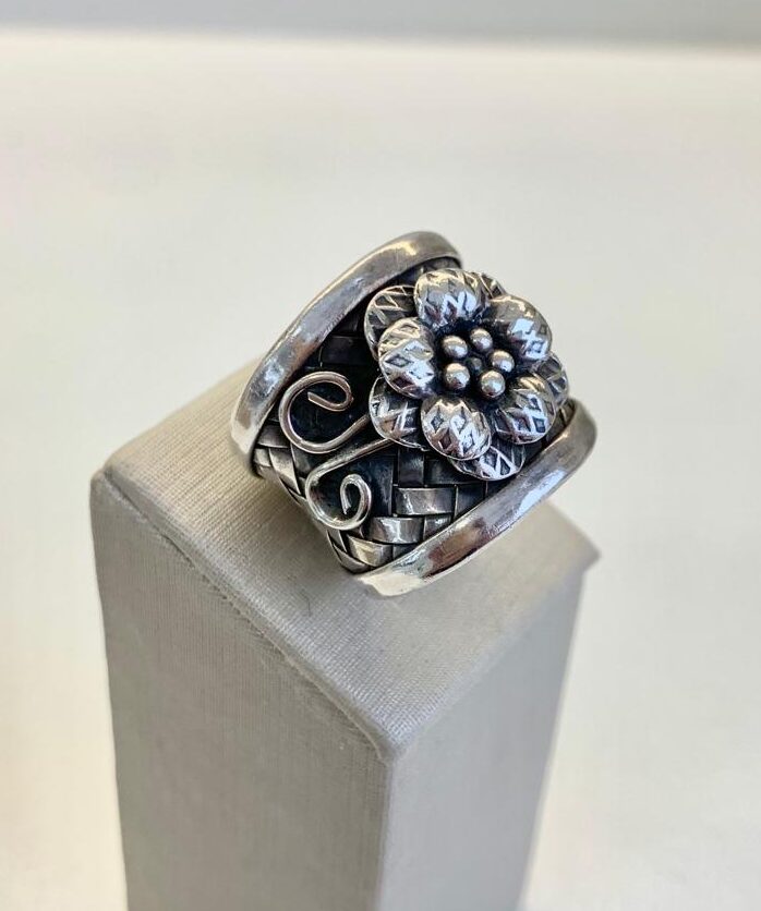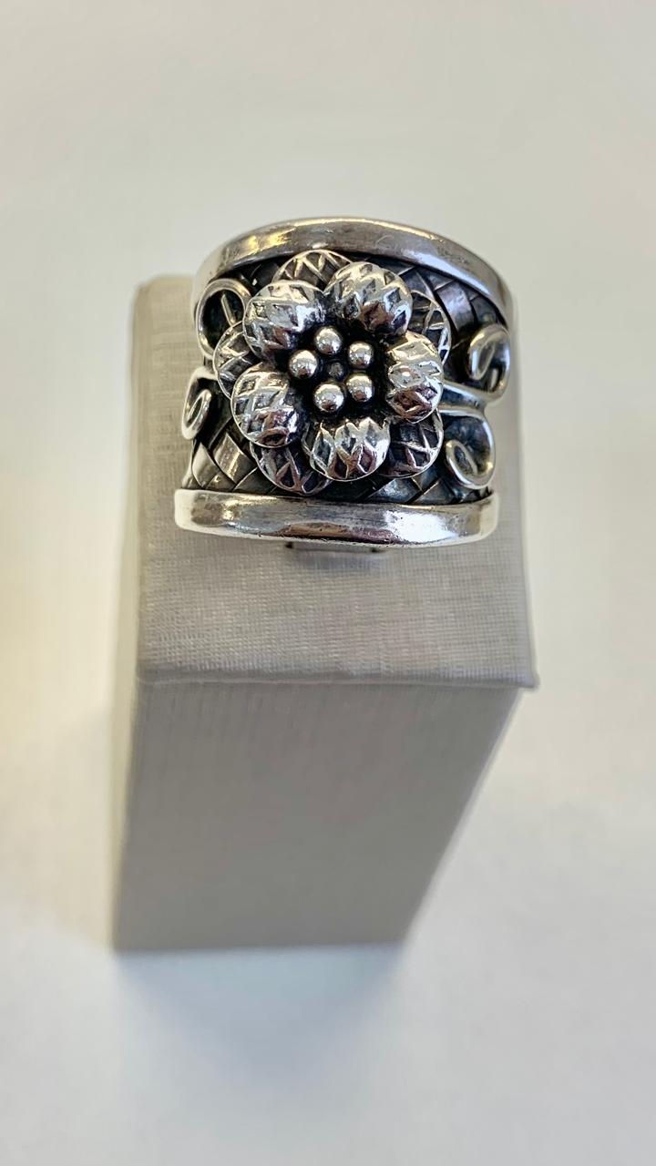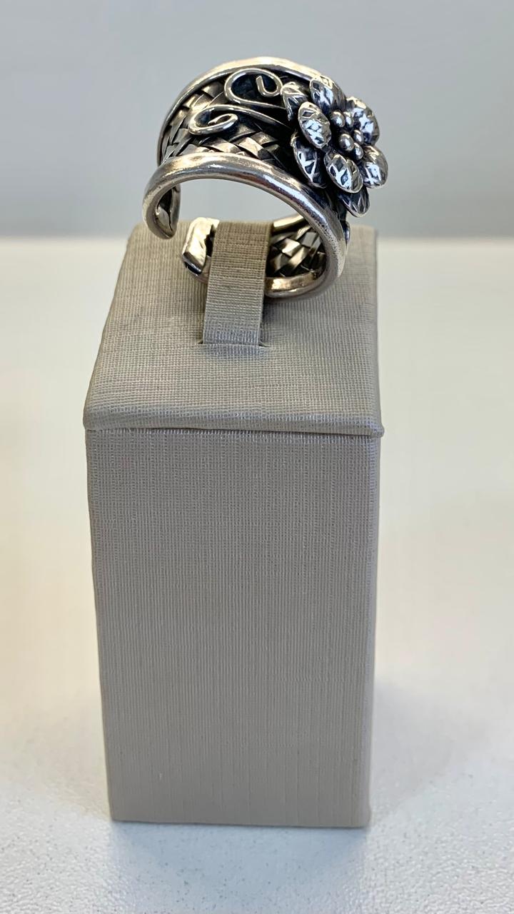 Anel de flor em prata envelhecida 925.