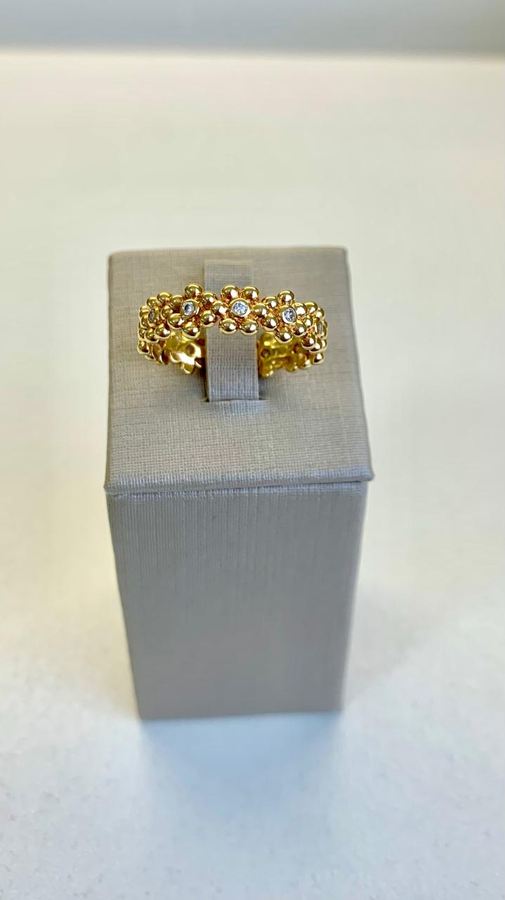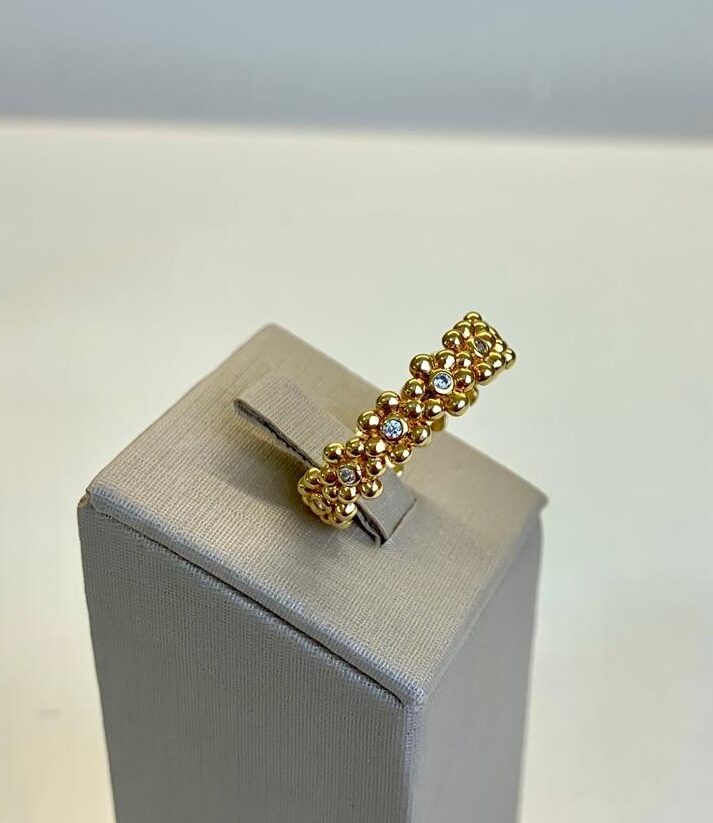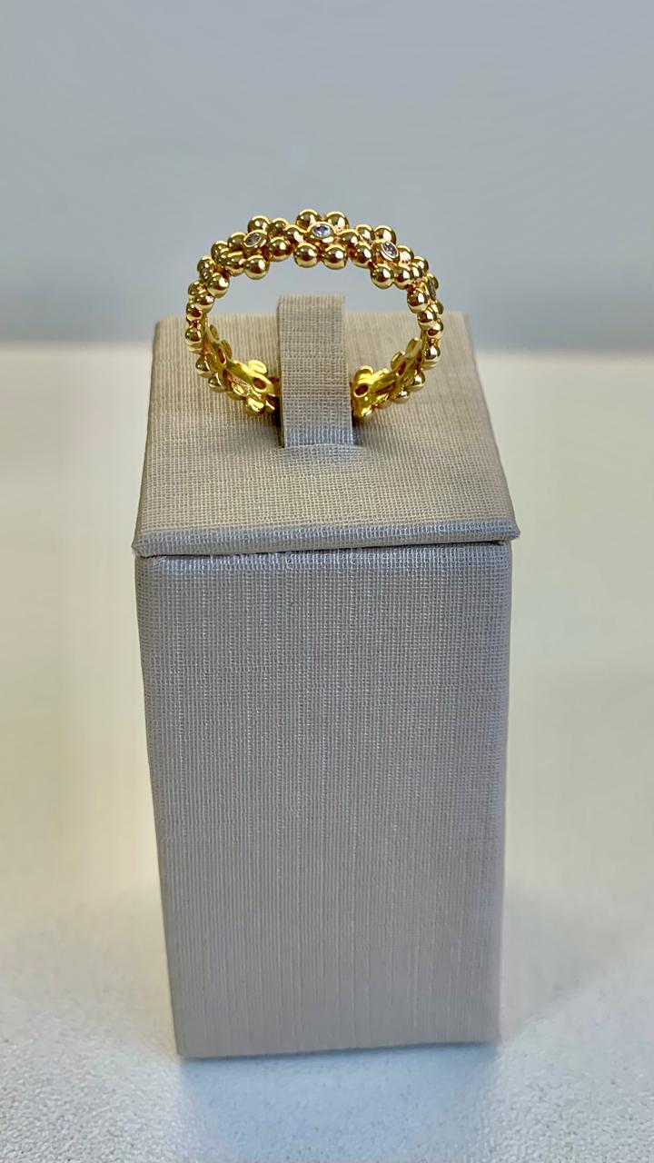 Anel florzinha com zircônias, de prata 925 com banho de ouro 18k.