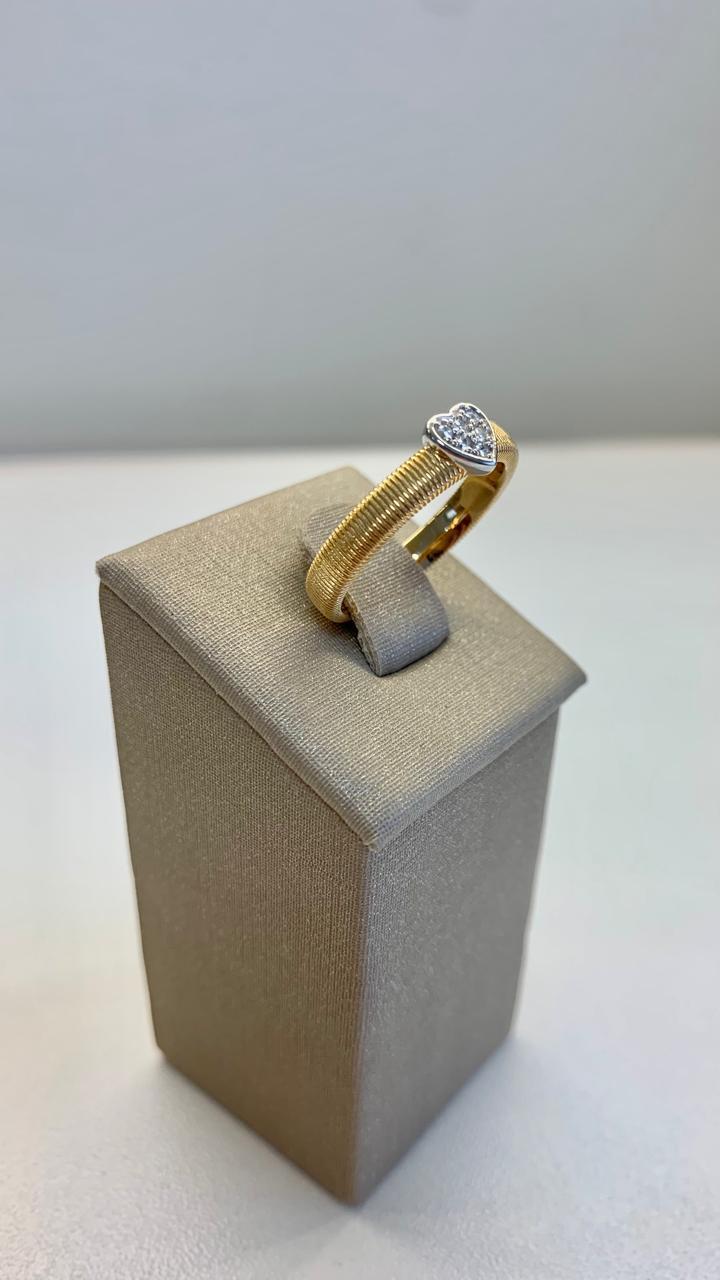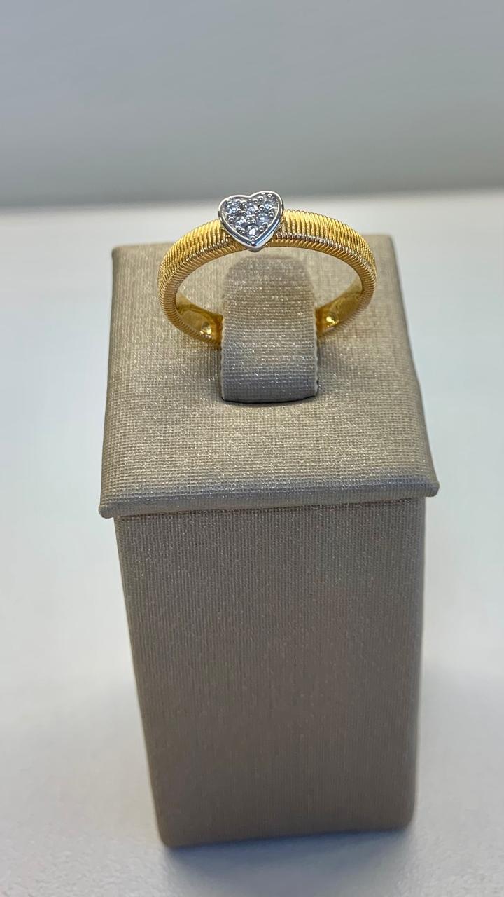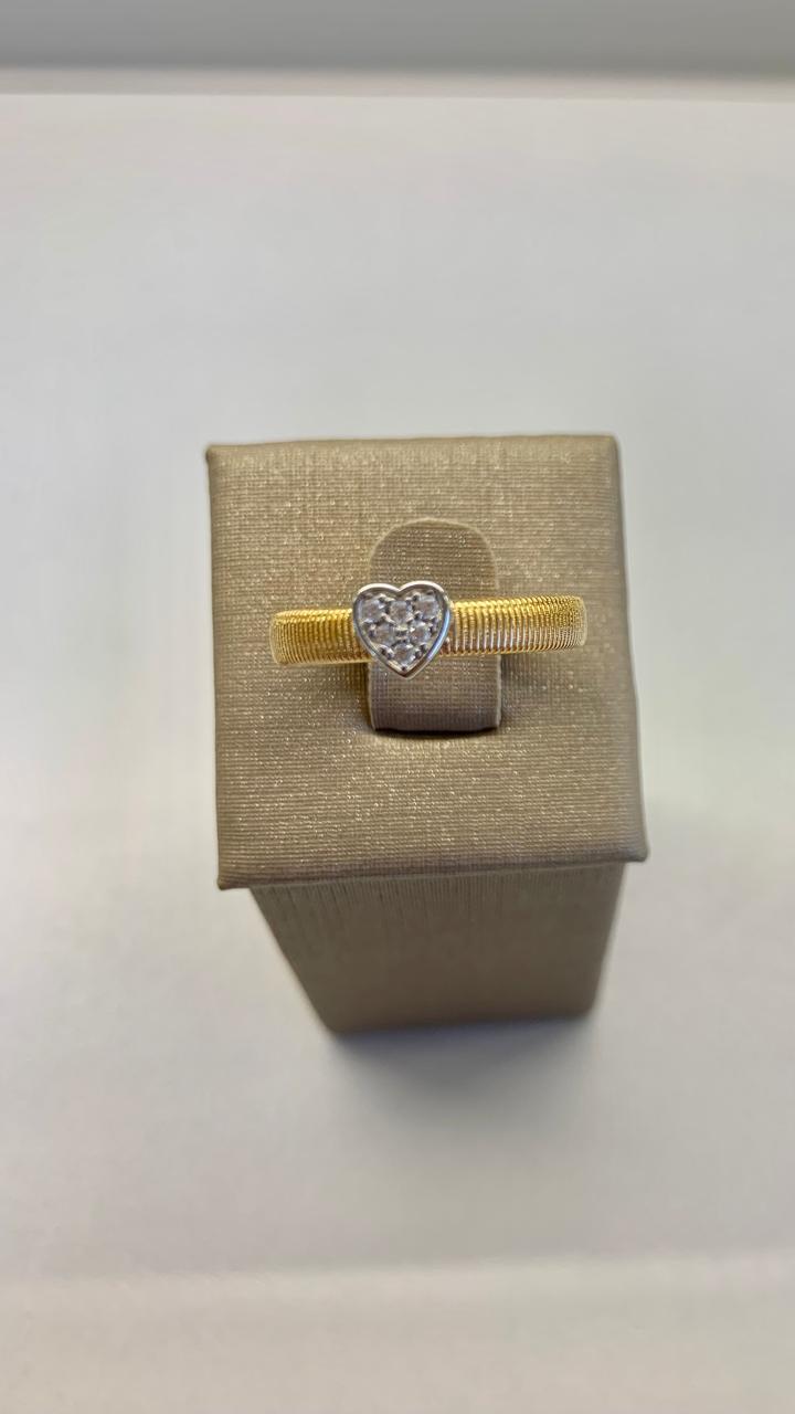 Anel frisado coração cravejado com zircônias brancas, em prata 925 e banho de ouro 18k.