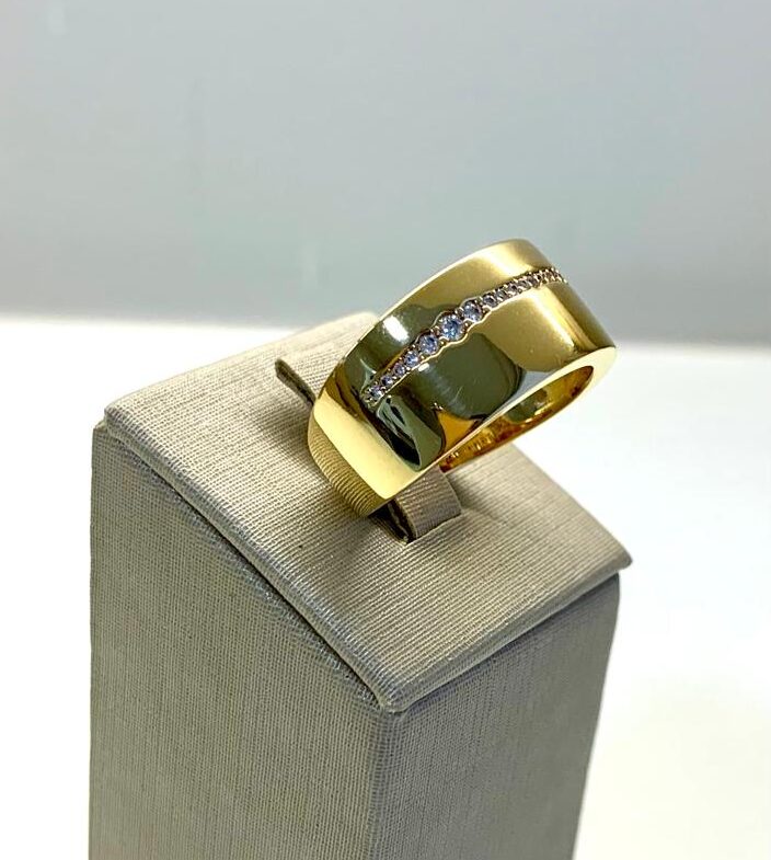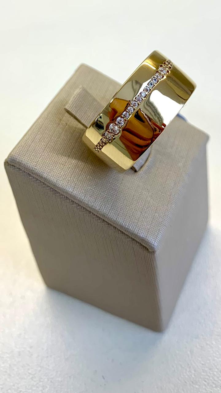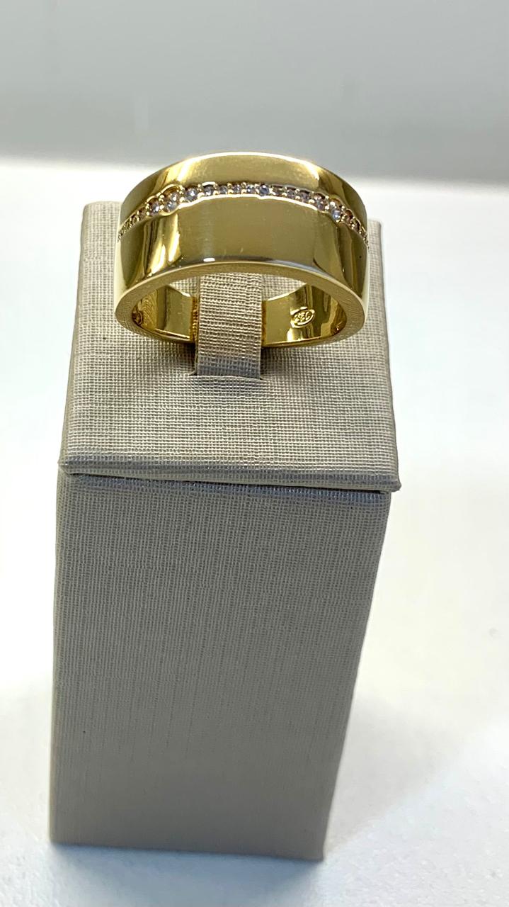 Anel liso cravejado com zircônias, prata 925 com banho de ouro 18k.