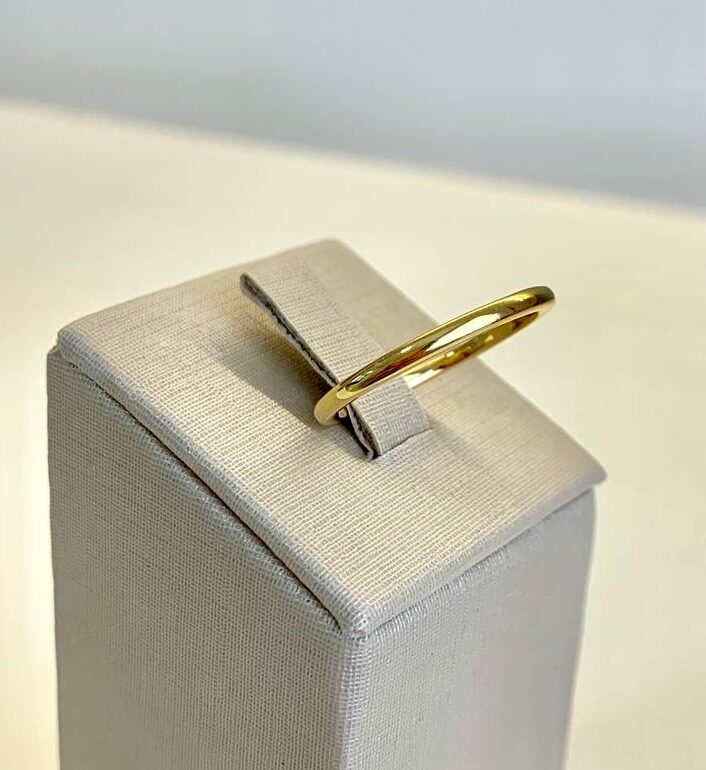 Aliança lisa fina em prata 925 com banho de ouro 18k.