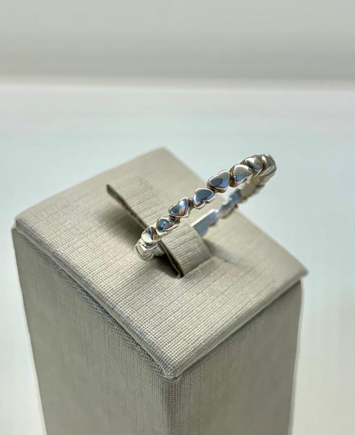 Anel mini corações, em prata 925.