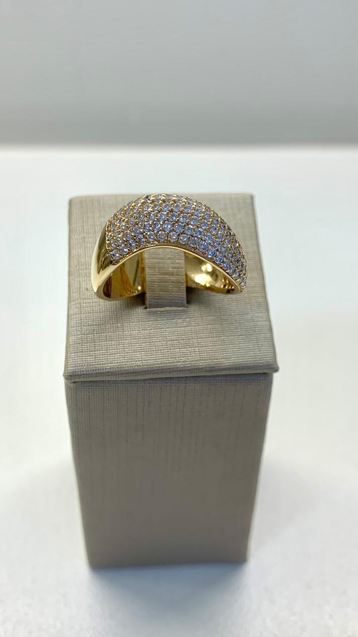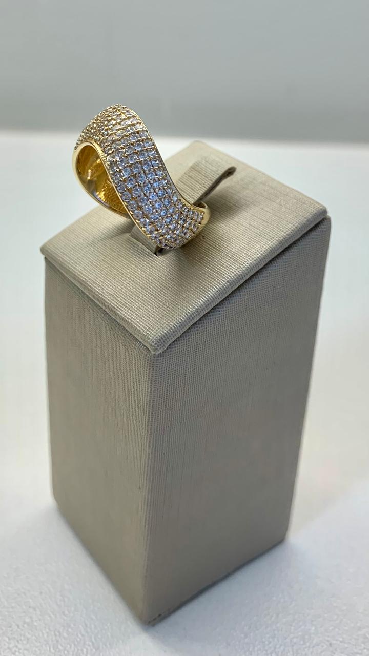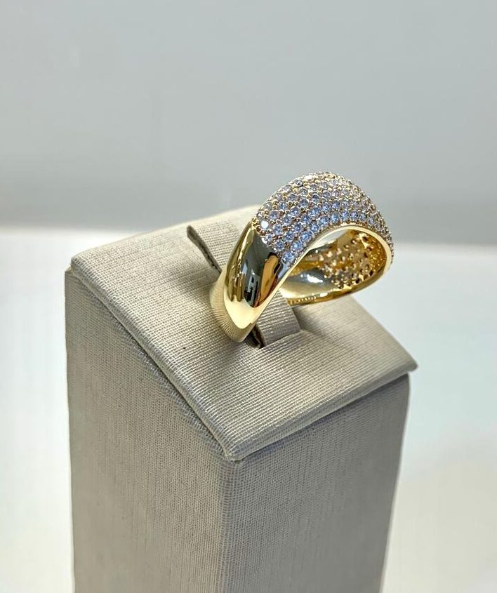 Anel ondas de prata 925, cravejado de zircônias com banho de ouro 18k.
