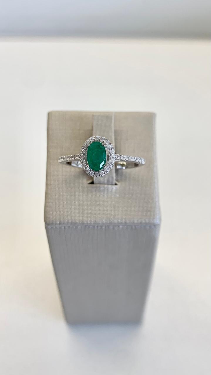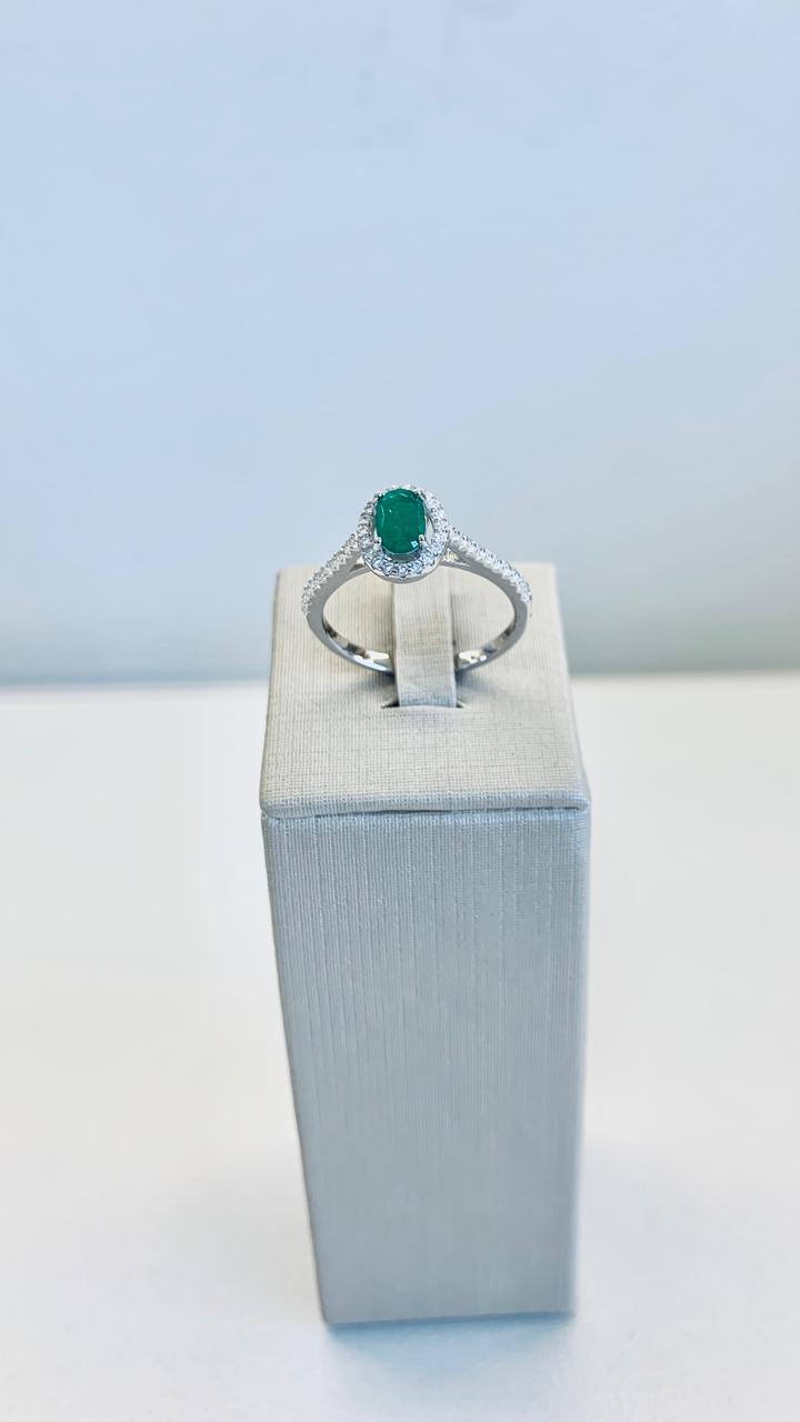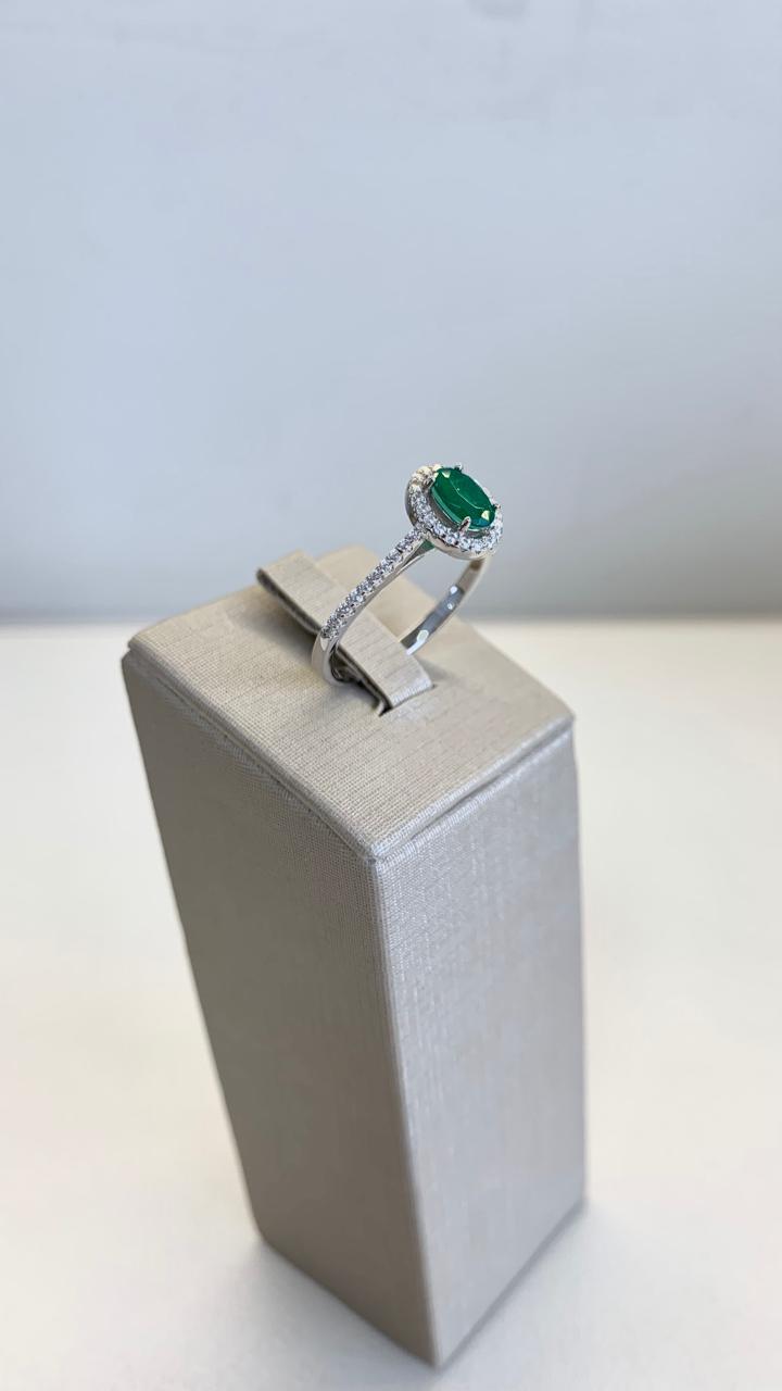 Anel oval esmeralda fusion cravejado com zircônias brancas, em prata 925.