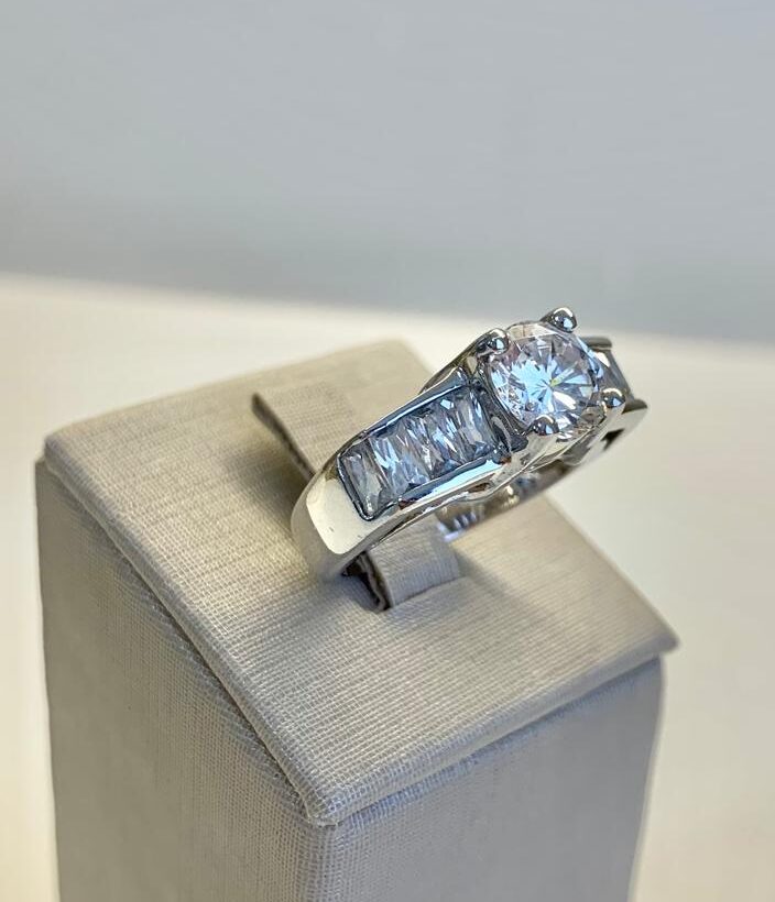 Anel solitário em prata 925.