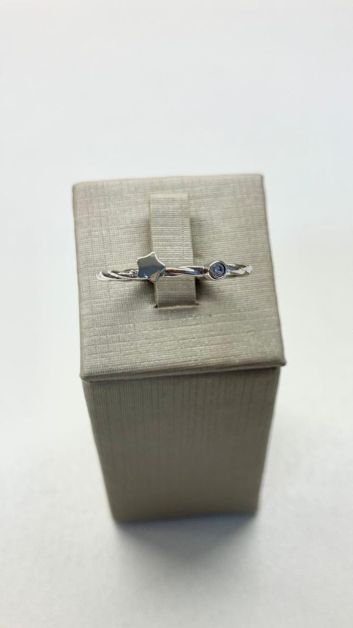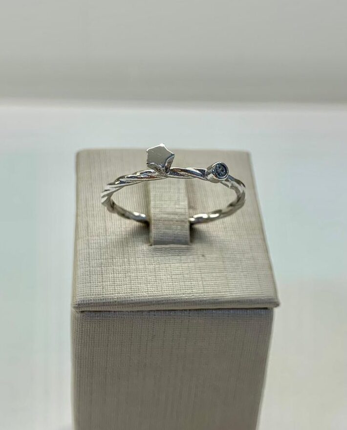 Anel torcido com uma estrela e com ponto de luz em prata 925.