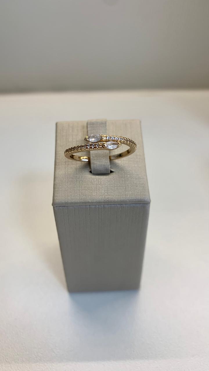 Anel transpassado com zircônias brancas, banhado a ouro18k.