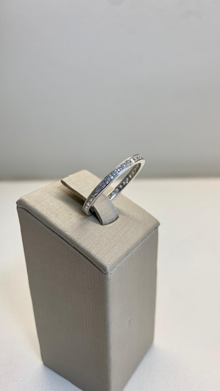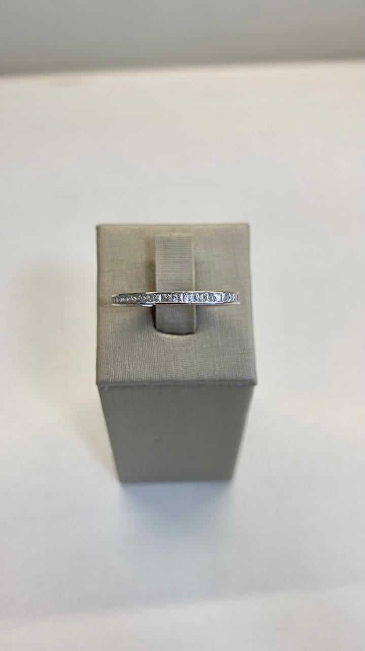 Anel trilho com zircônias brancas quadrada, em prata 925.