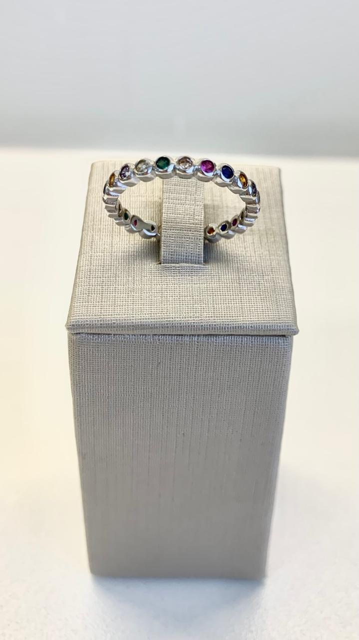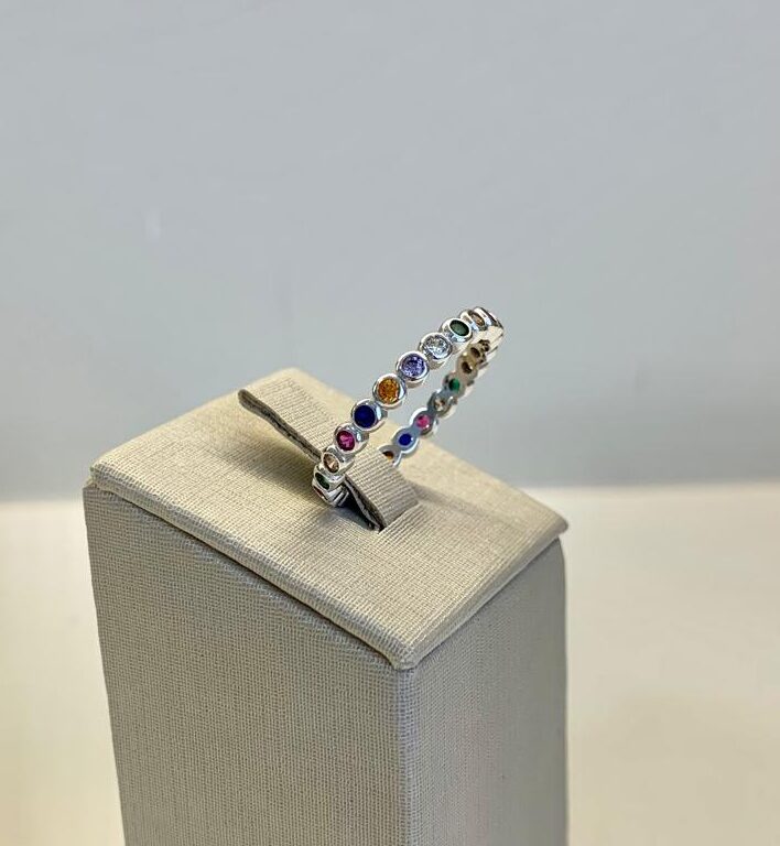 Anel pontos de luz com zircônias coloridas em prata 925.