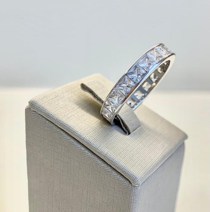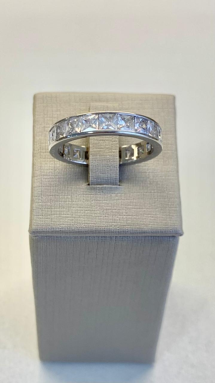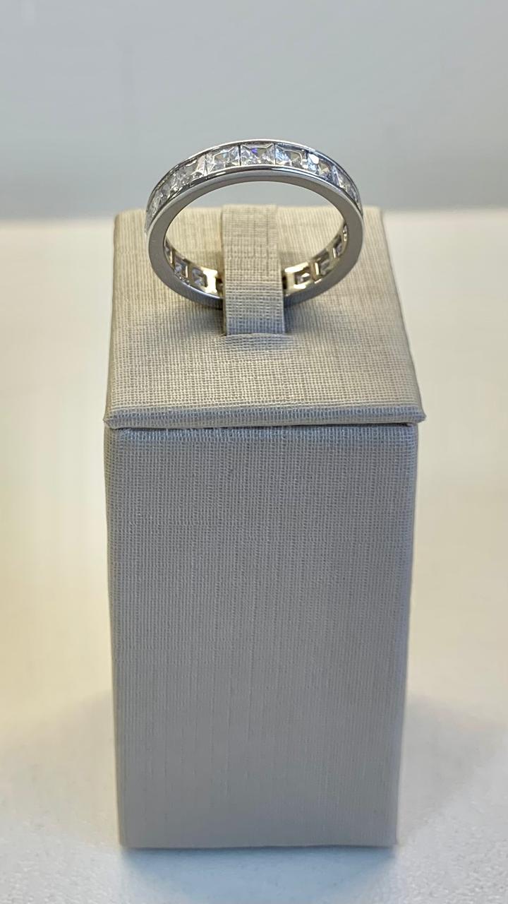 Anel com zircônias quadradas em prata 925.