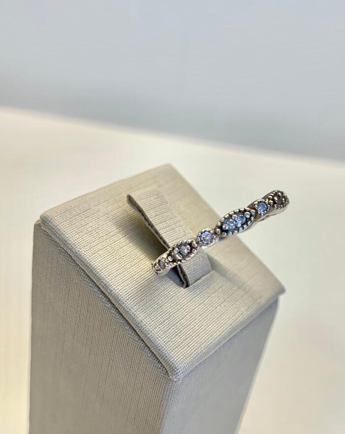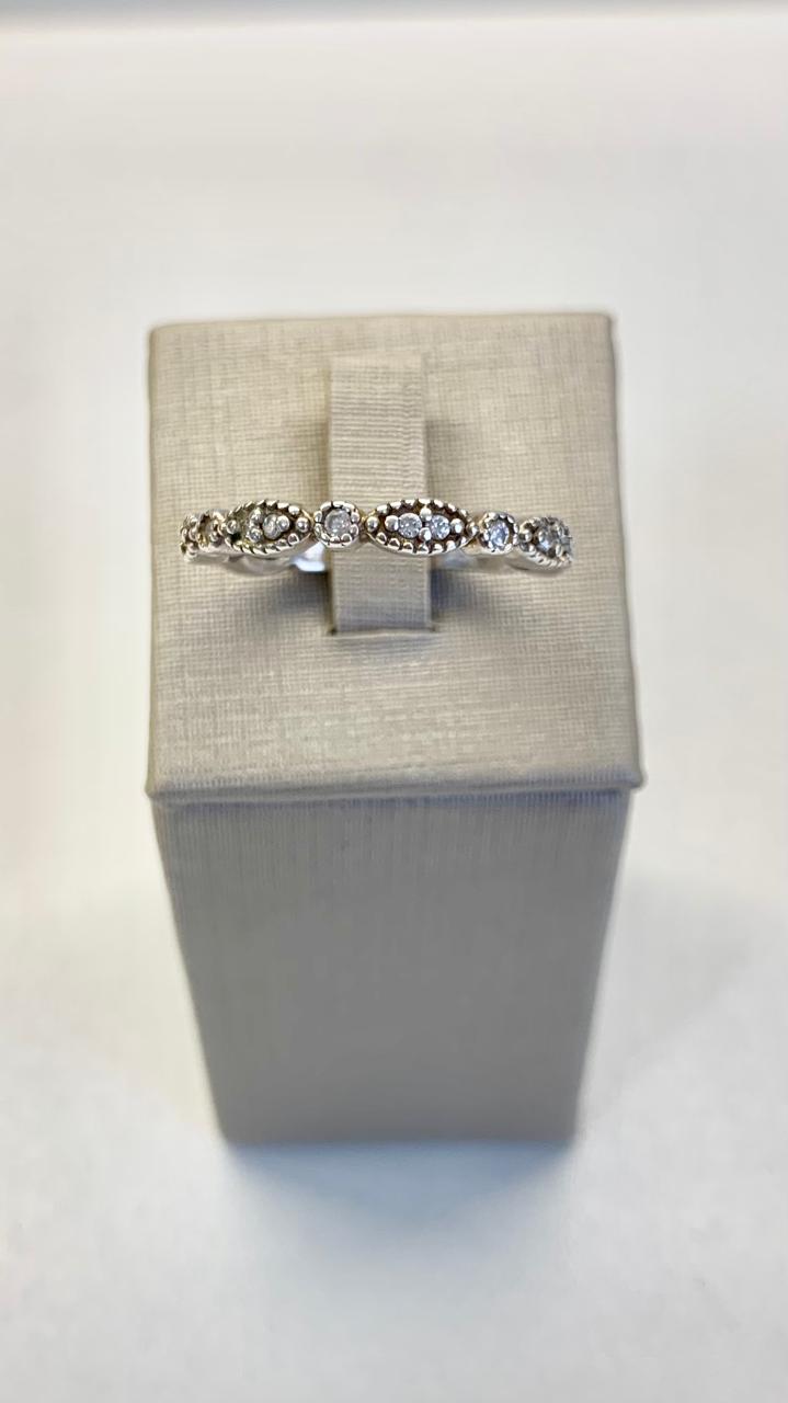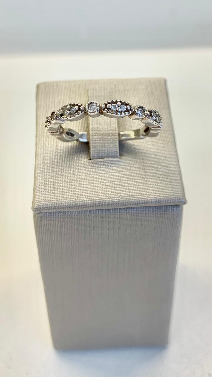 Anel com zircônias, em prata 925.
