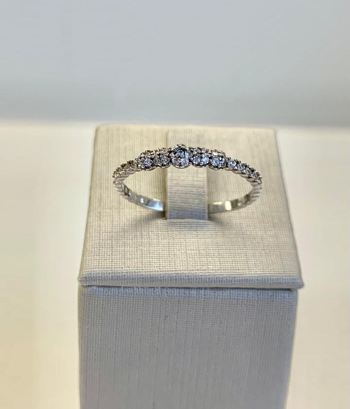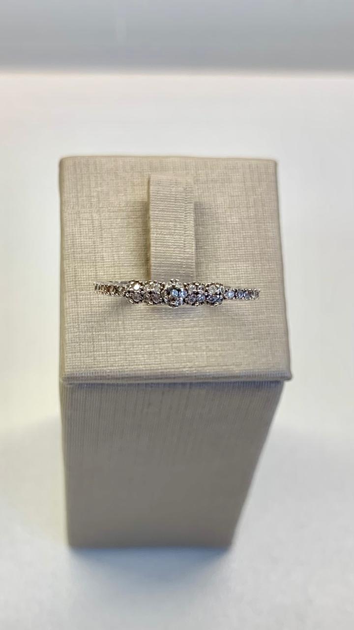Anel com mini pontos cravejado com zircônias, em prata 925.