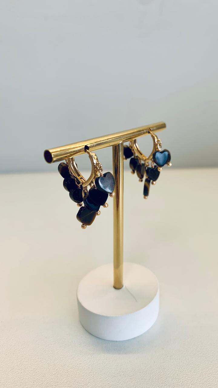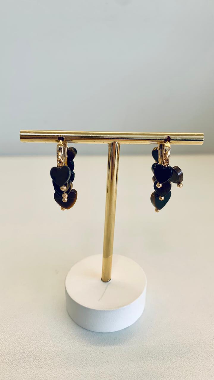 Argola com corações de olho de tigre banhado a ouro 18k.