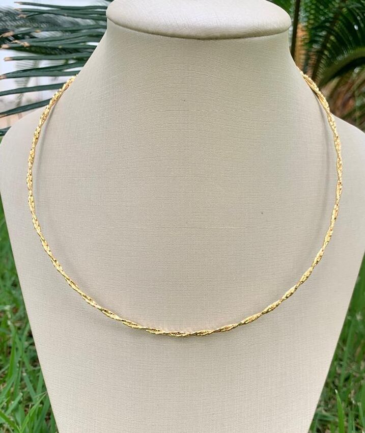 Aro torcido detalhado, banhado a ouro18k.
