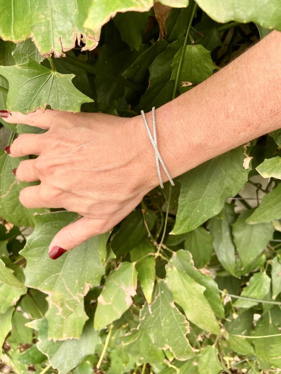 Bracelete em x com micro zircônias brancas, em ródio branco.