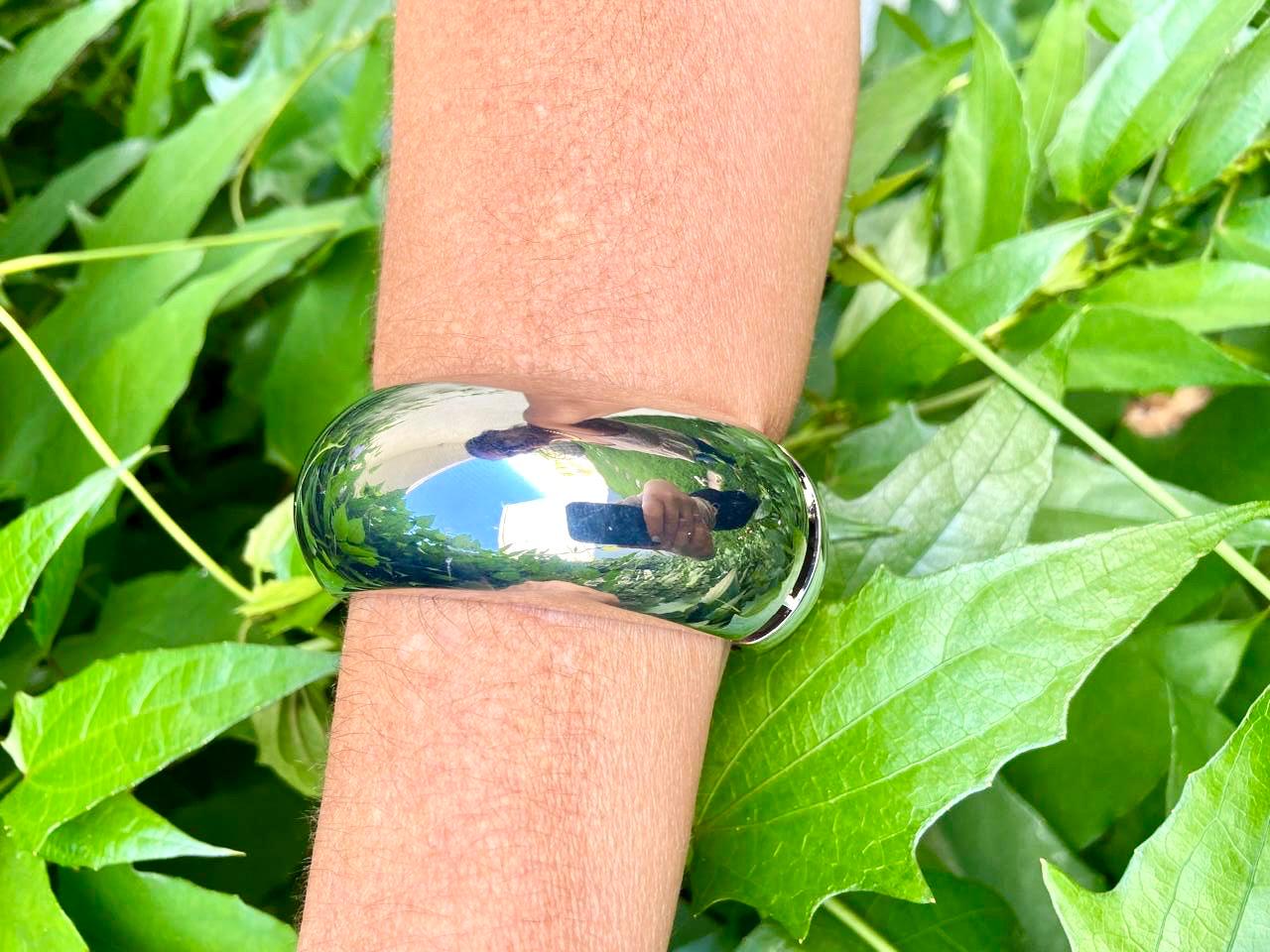 Bracelete maxi liso em ródio branco.