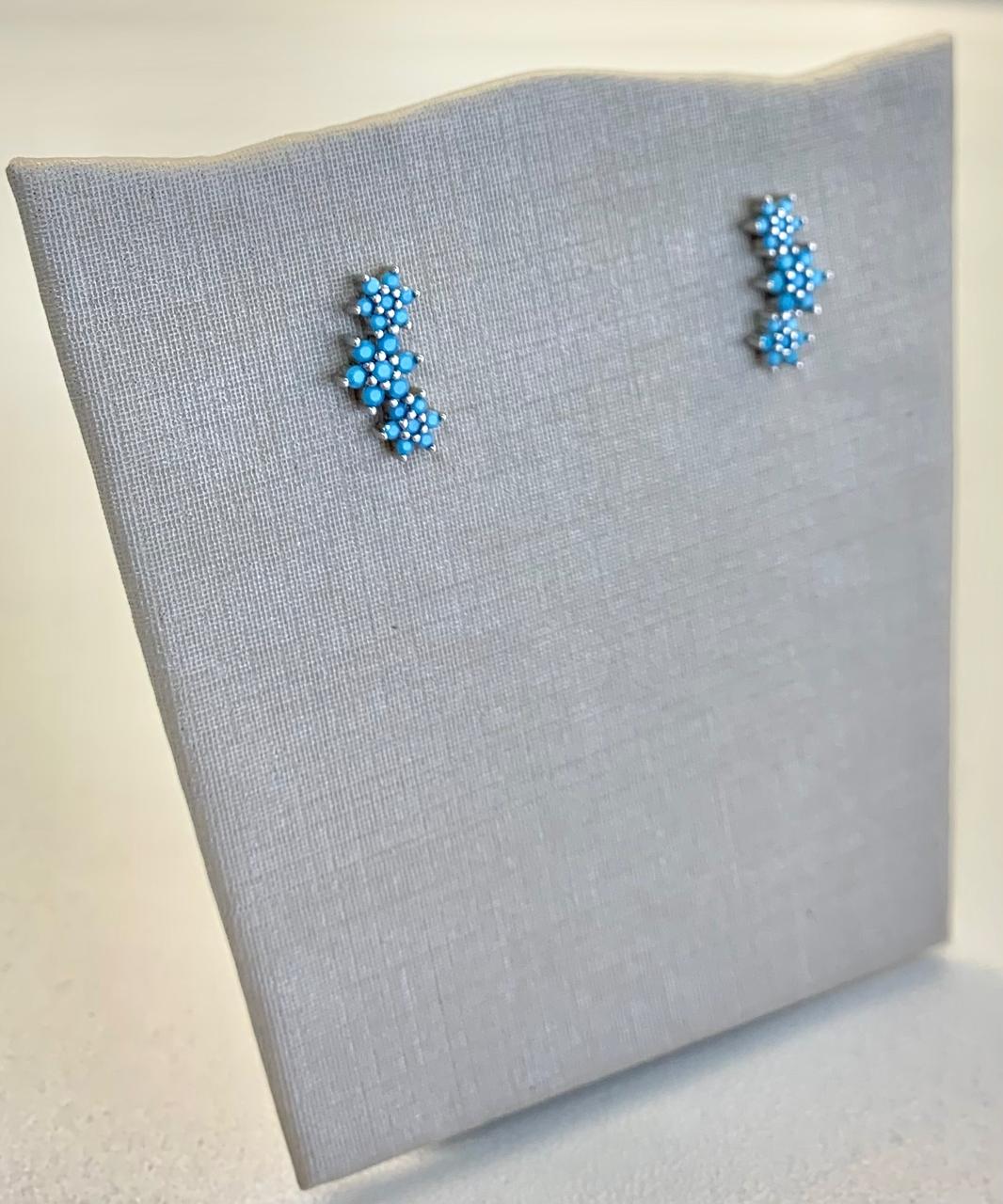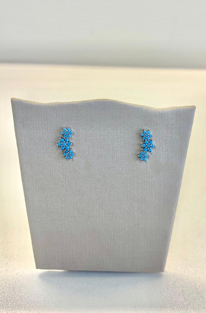 Brinco 3 flores turquesa de prata 925.