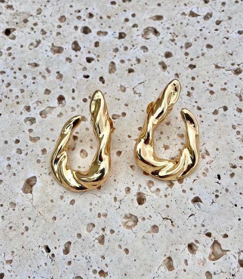 Brinco vazado orgânico banhado a ouro 18k.