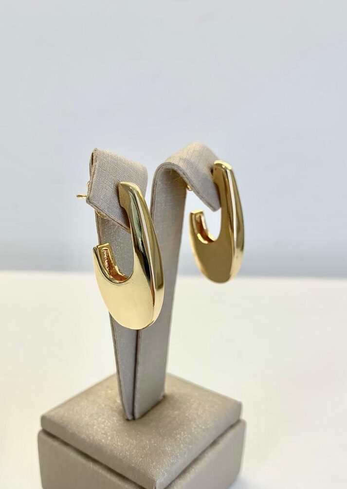 Brinco anzol, banhado a ouro 18k.