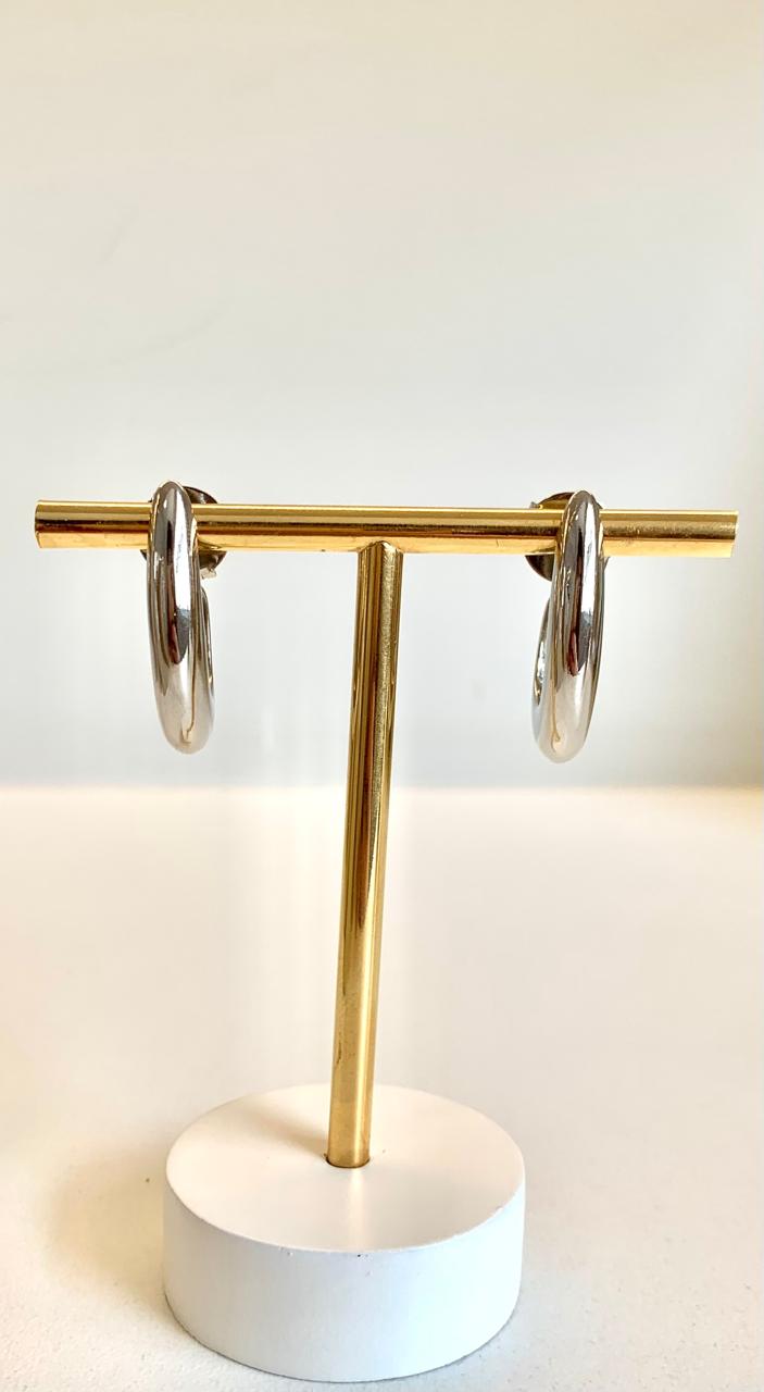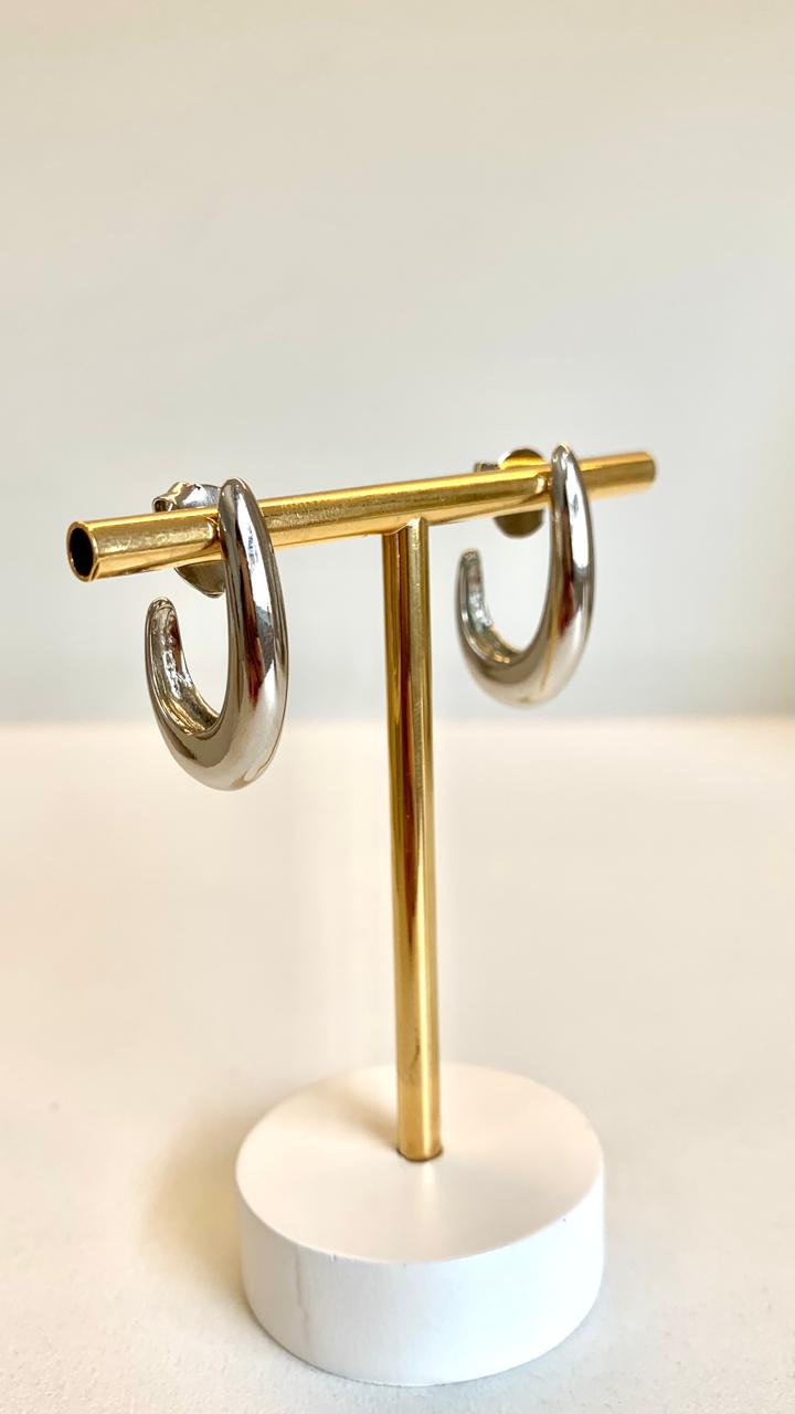 Brinco anzol em ródio branco.