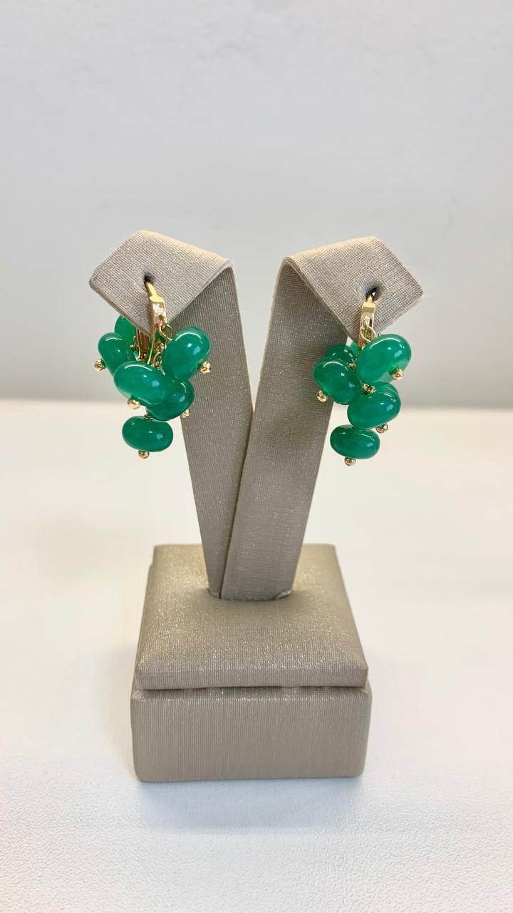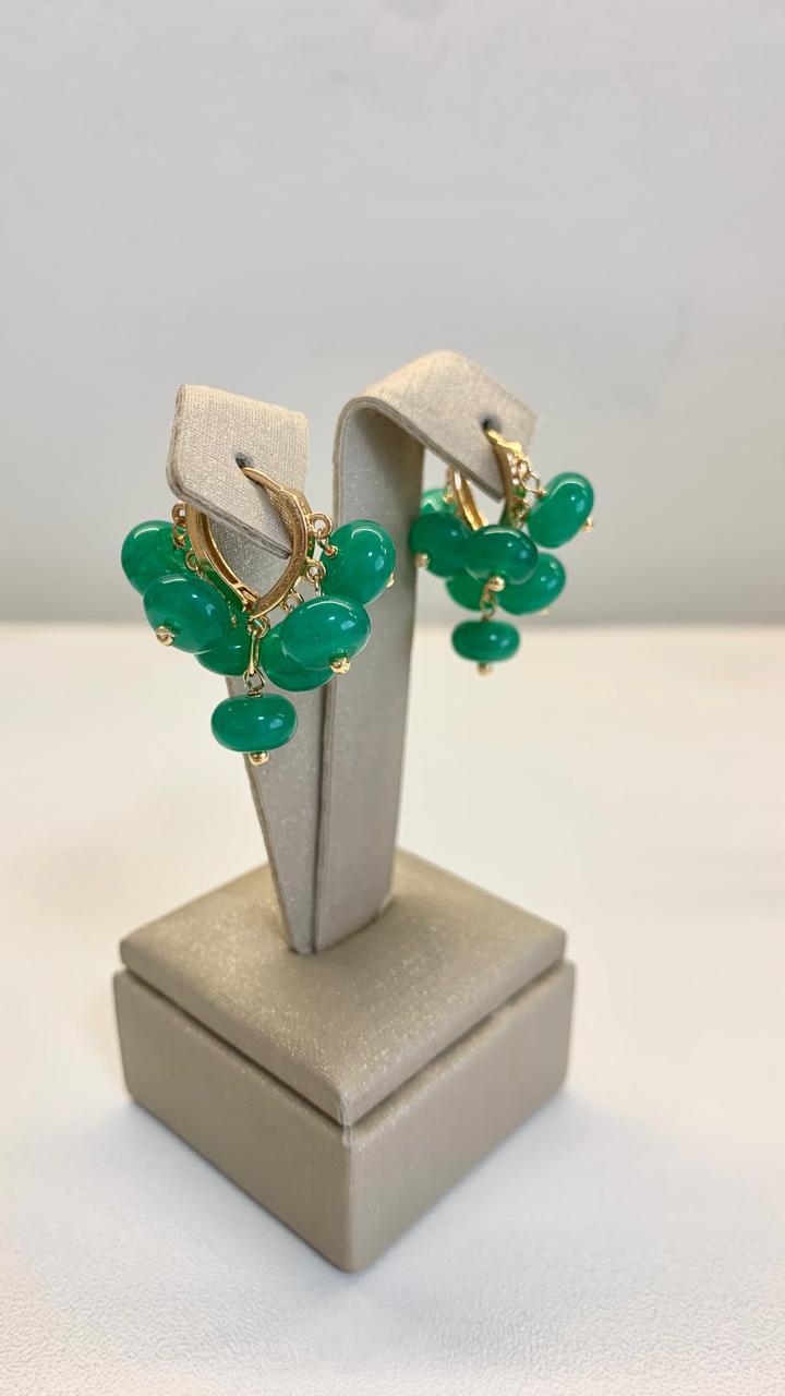 Brinco argola click com pedra natural jade verde, banhado a ouro 18k.