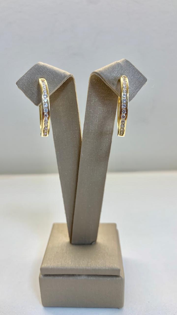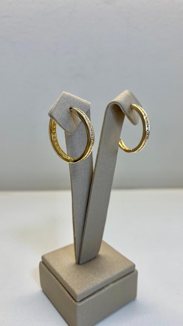 Brinco argola click m com zircônias brancas, banhado a ouro18k.