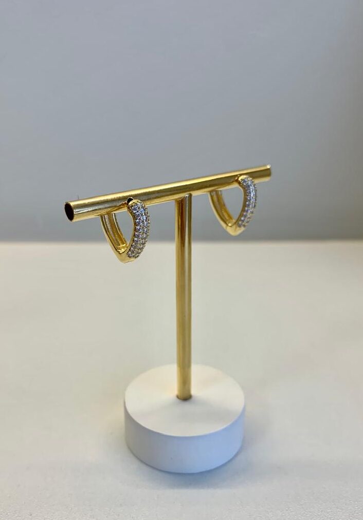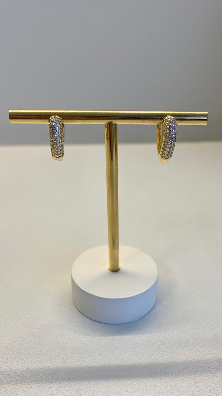 Argola de coração G, cravejada com zircônias, banhada a ouro 18k.