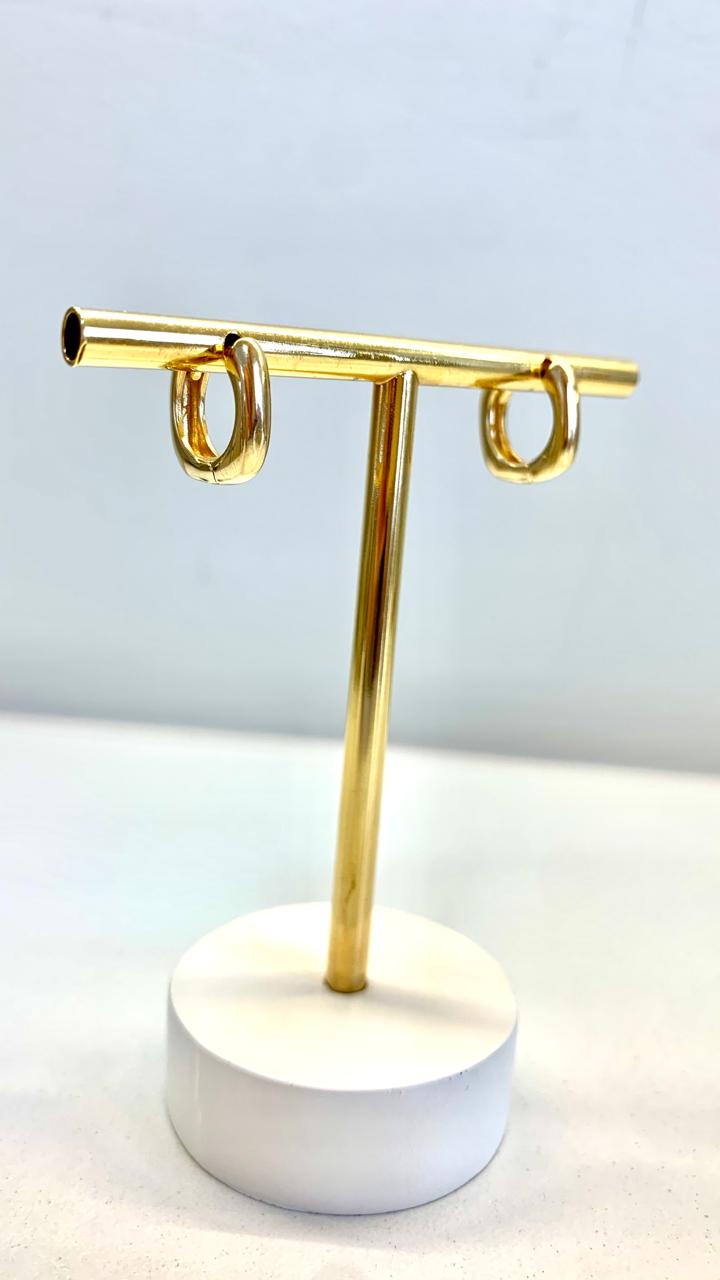 Brinco argola lisa quadrada banhada a ouro 18k.