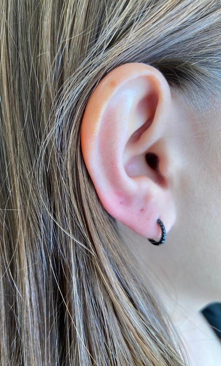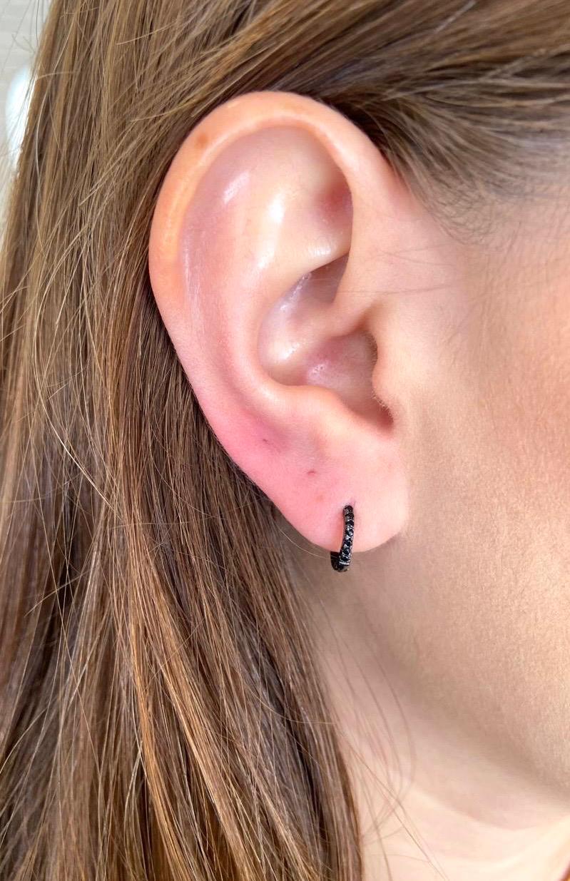 Brinco argola M com zircônias negras, em prata 925 com banho de ródio negro.