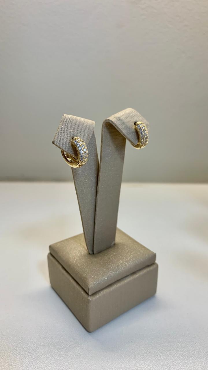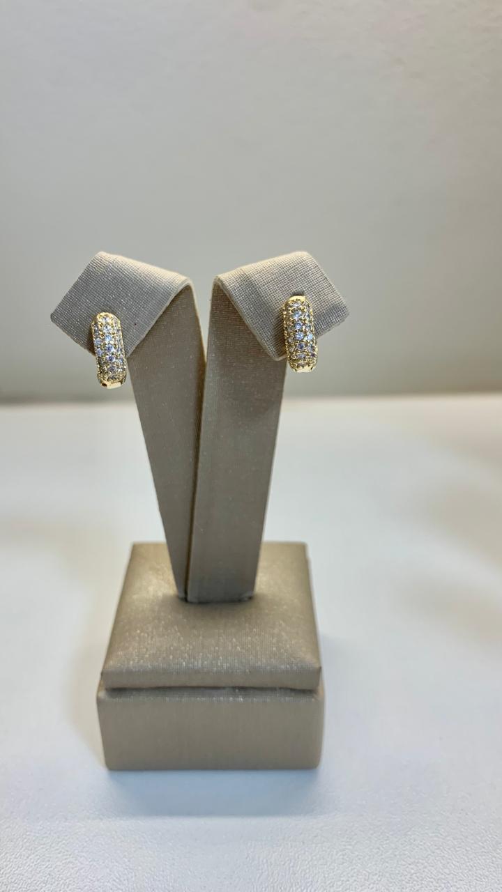 Brinco argola P cravejada de zircônias brancas, banhado a ouro18k.