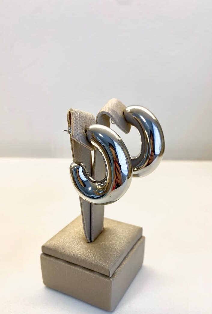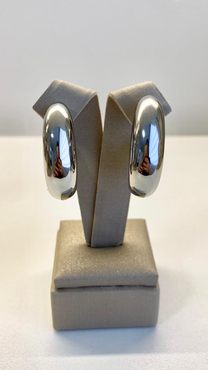 Brinco vírgula em ródio branco.