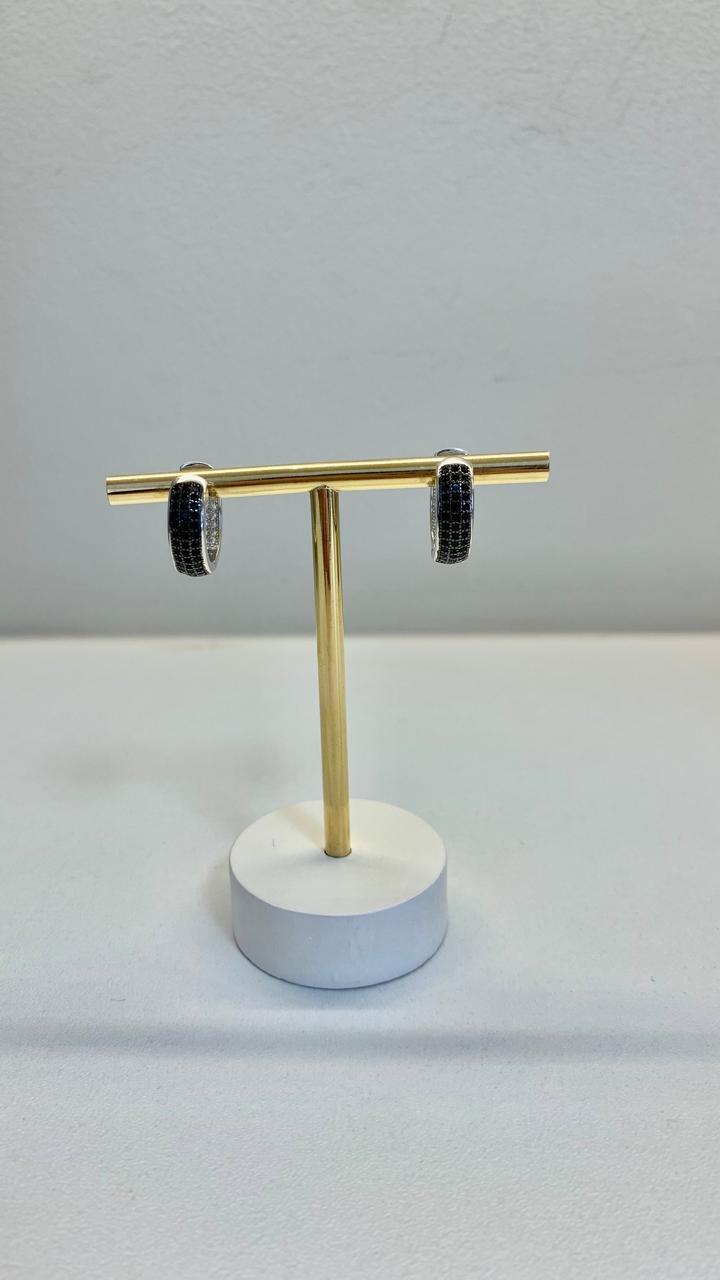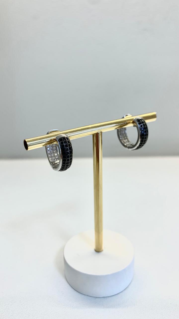 Brinco argola com zircônia negra e zircônia branca, em prata 925.