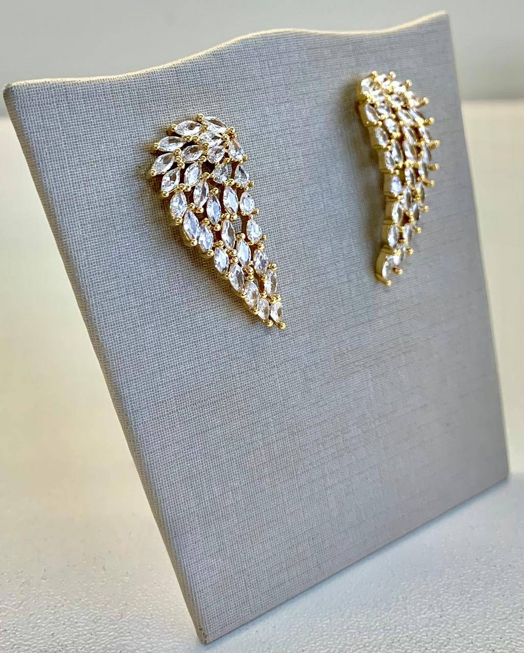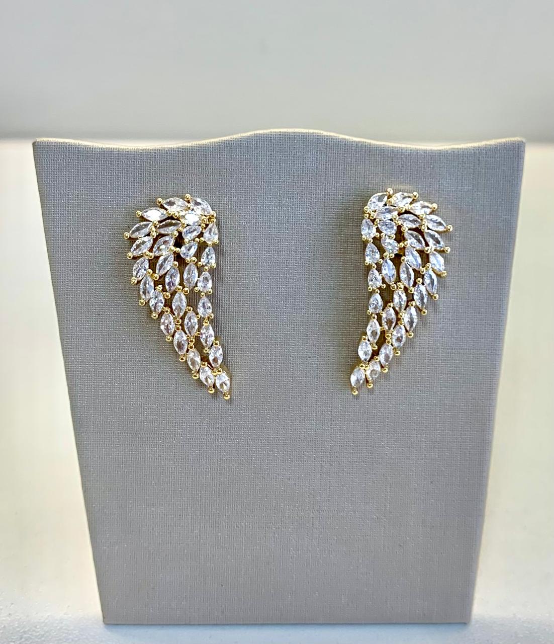 Brinco asa cravejada de zircônias banhado a ouro 18k.