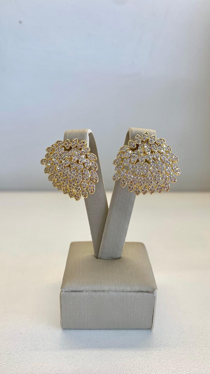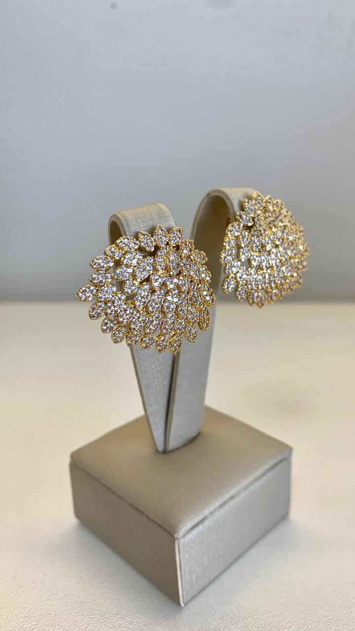 Brinco cacho, cravejado com zircônias brancas, banhado a ouro 18k.