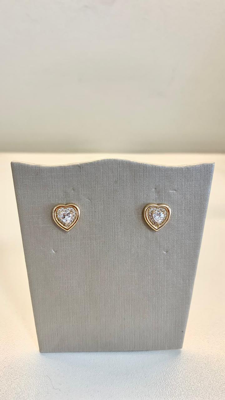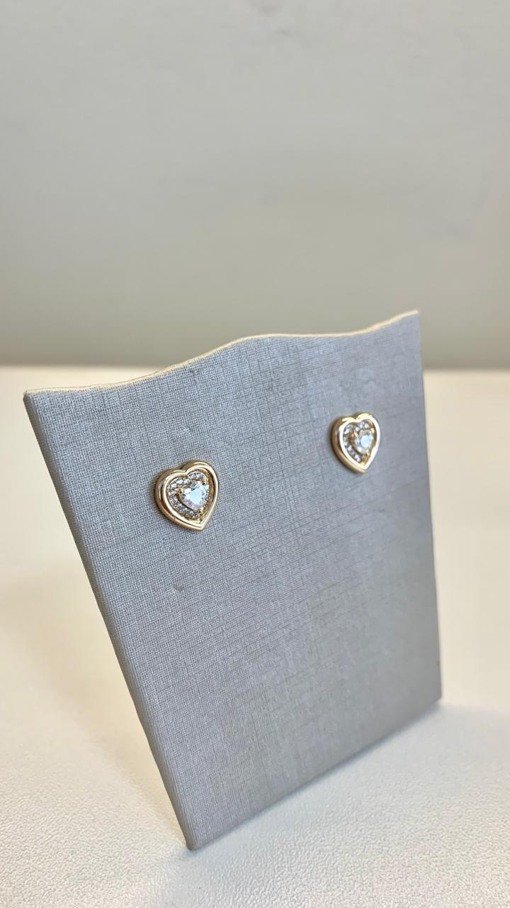 Brinco de coração com pedra de coração, em prata 925 e banho de ouro18k.