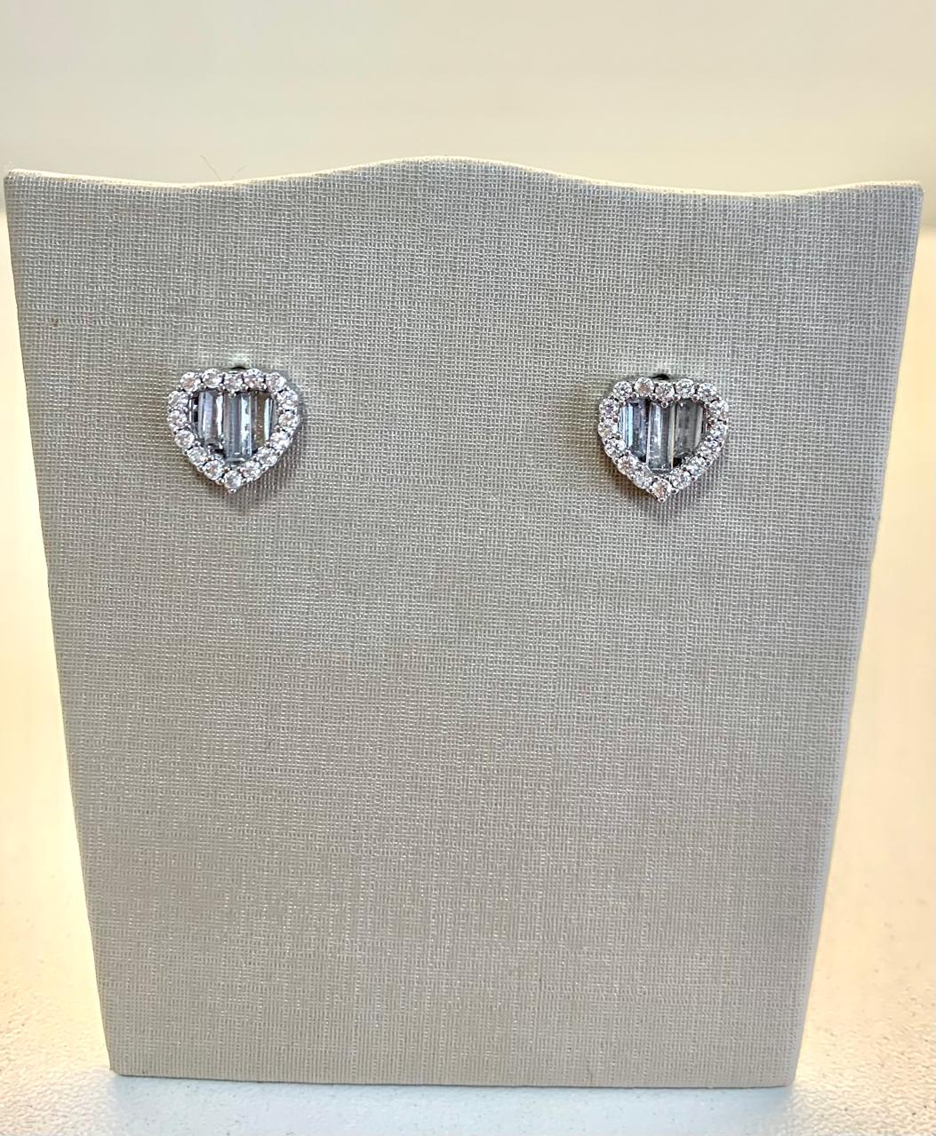Brinco coração com zircônias com detalhes em baguetes, em prata 925.