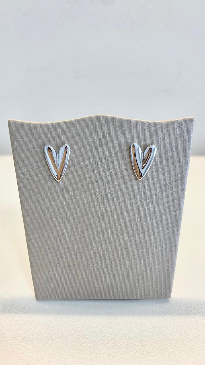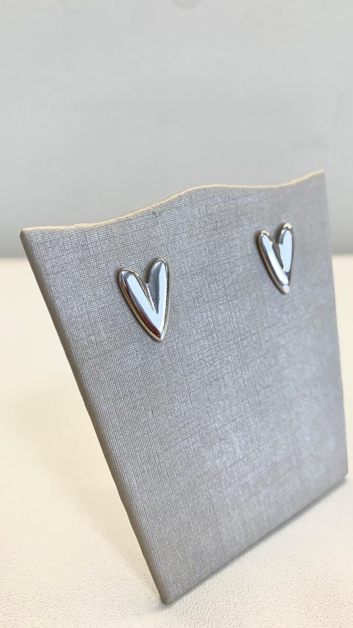 Brinco coração em ródio branco.