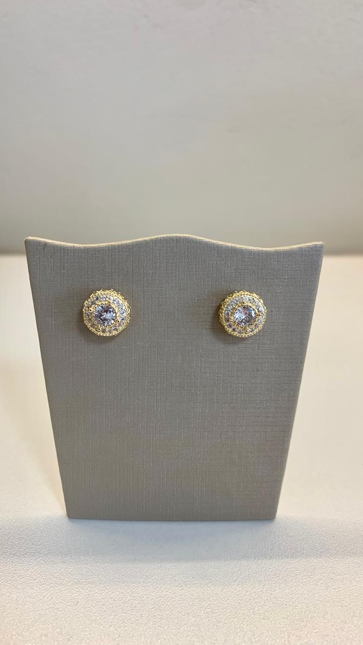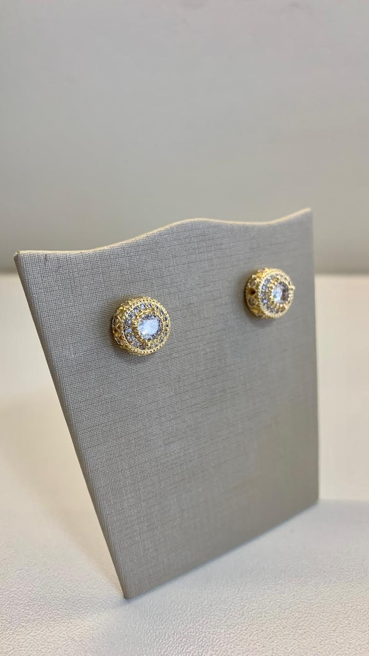 Brinco coroa com zircônia branca, banhado a ouro18k.