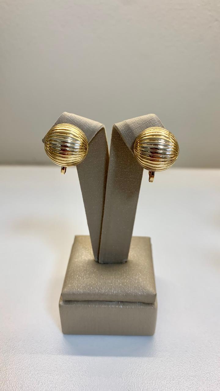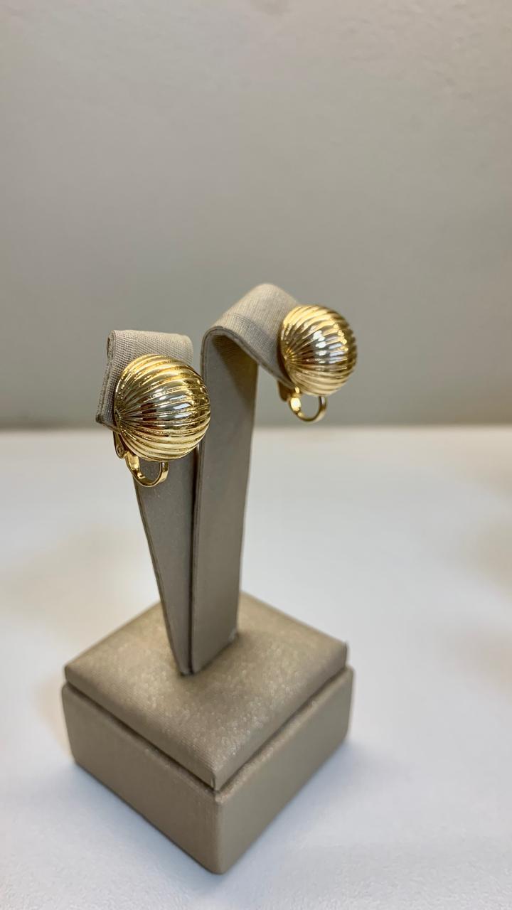 Brinco de pressão meia esfera riscado, banhado a ouro18k.