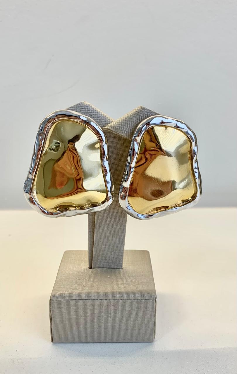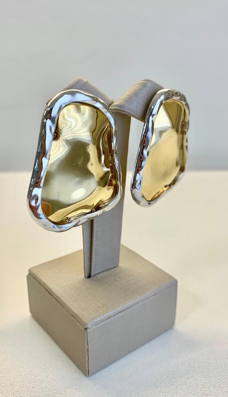 Brinco duo orgânico, banhado a ouro 18k e ródio branco.
