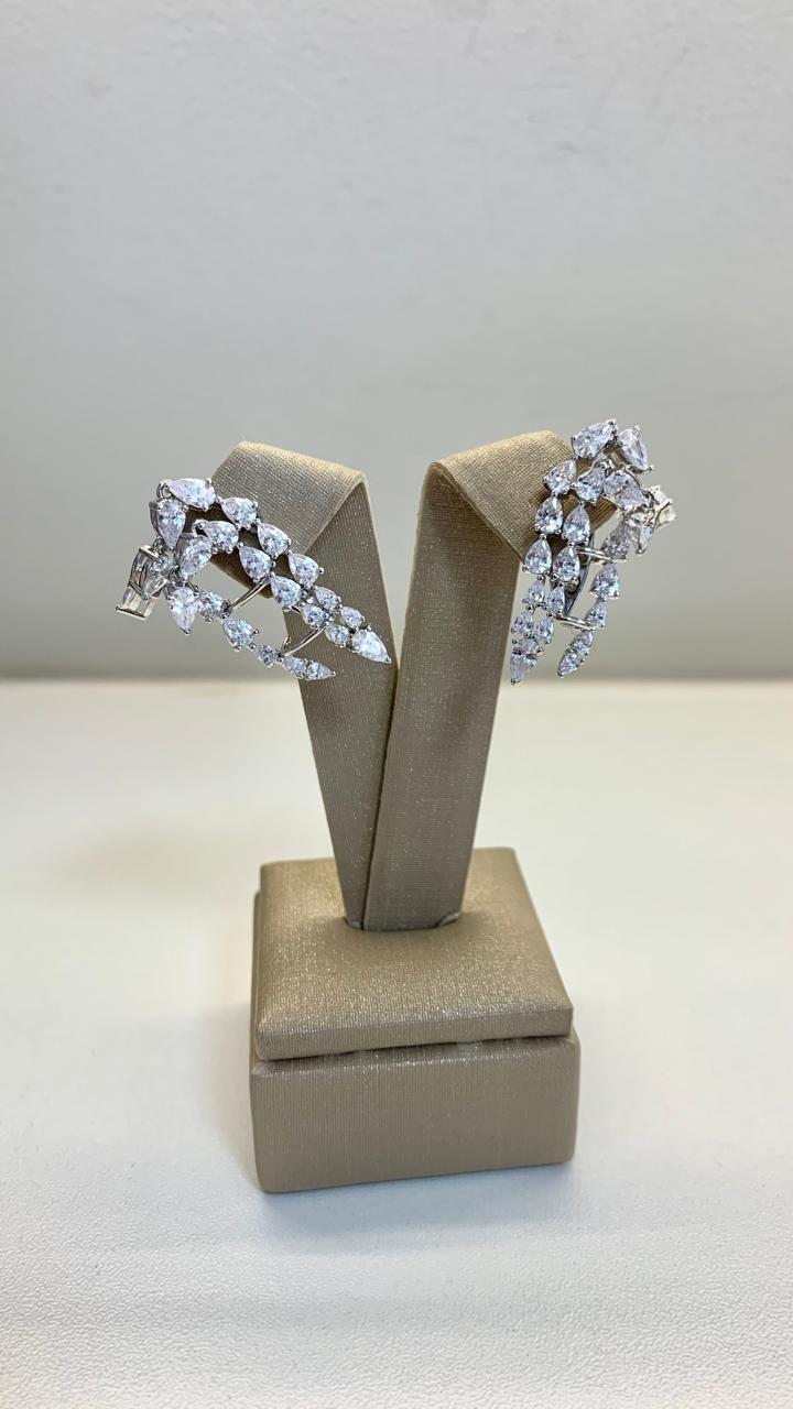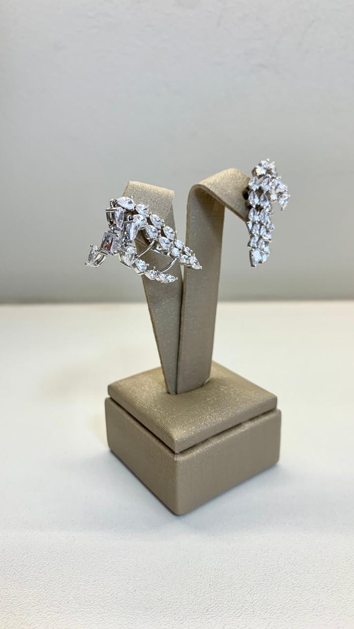Brinco ear cuff com zircônias brancas, em ródio branco.