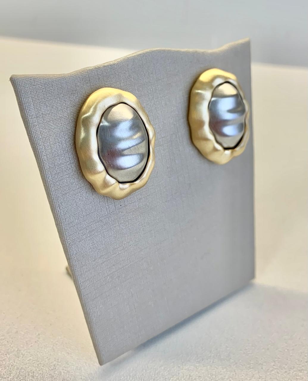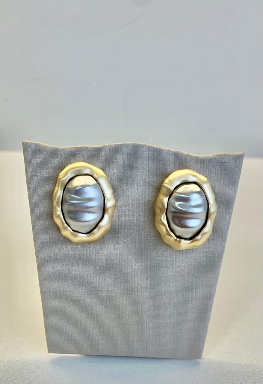 Brinco escovado duo, banhado ouro 18k e ródio branco.